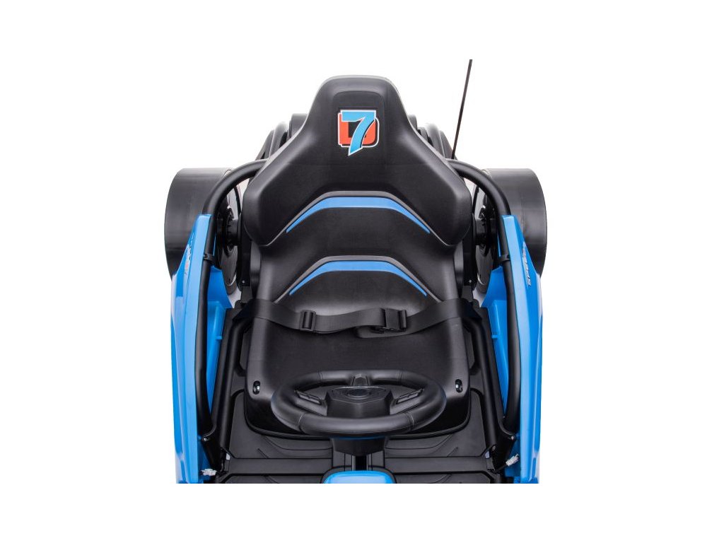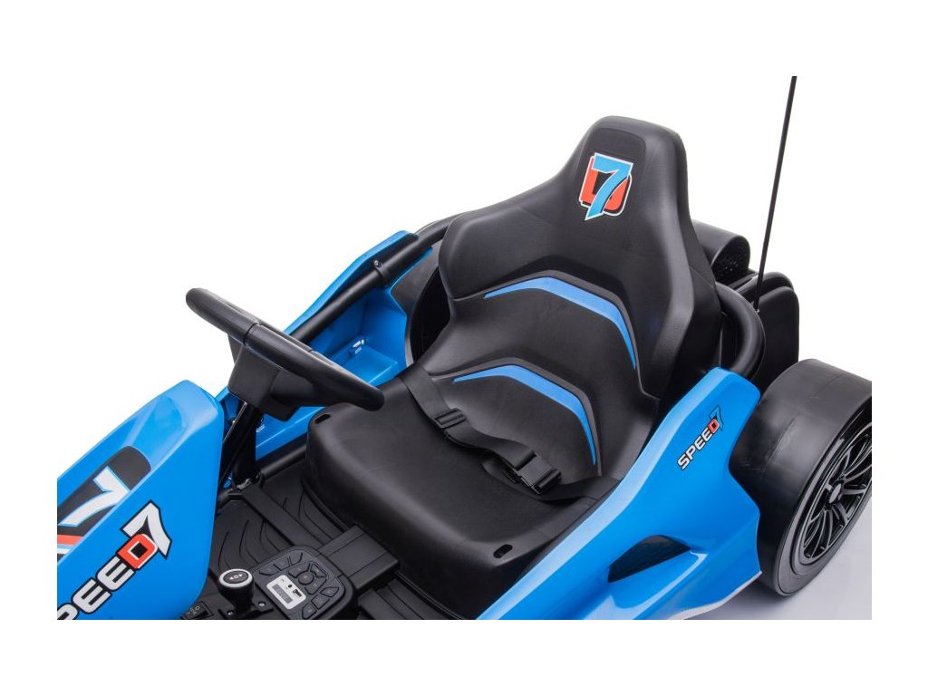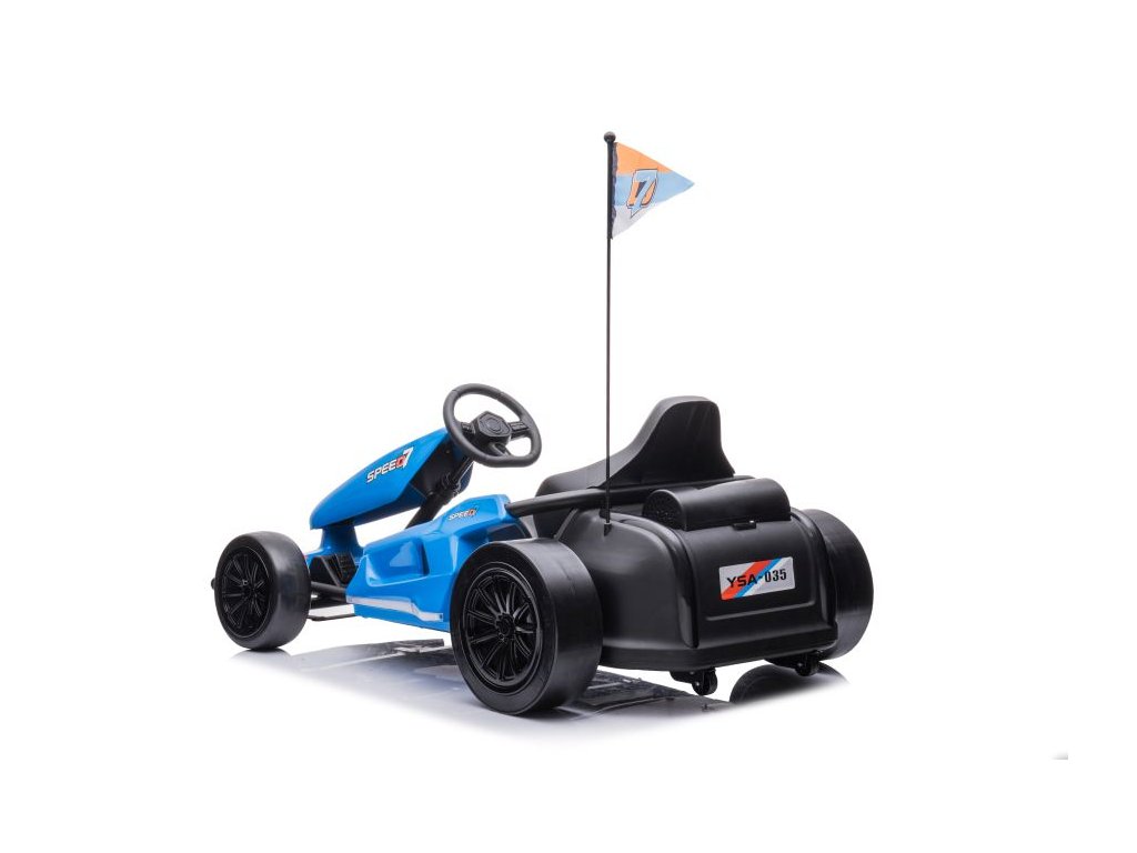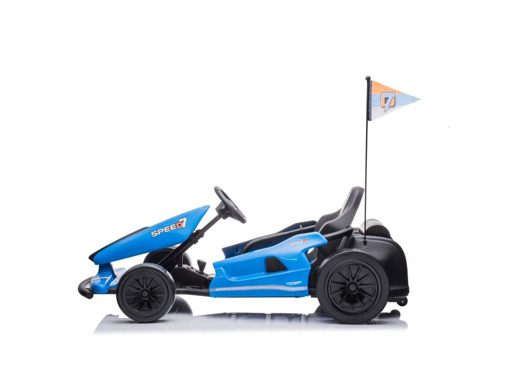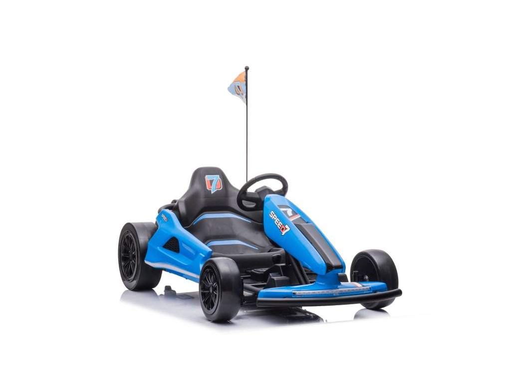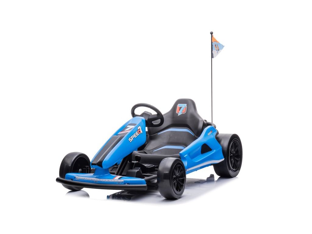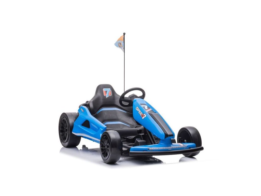 Un go-kart electric pentru copii cu o baterie de 24V 7Ah și două motoare de 200W nu poate lipsi din niciun garaj pentru copii. Kartul este echipat cu un scaun în formă sportivă. Kartul are o capacitate de încărcare de 60 kg , deci este destinat copiilor mai mari. Kartul atinge o viteză de 9 - 12 km/h. Roțile din față sunt din spumă EVA, iar roțile din spate sunt din plastic, datorită acestei caracteristici, kartul își poate folosi funcția de drifting.