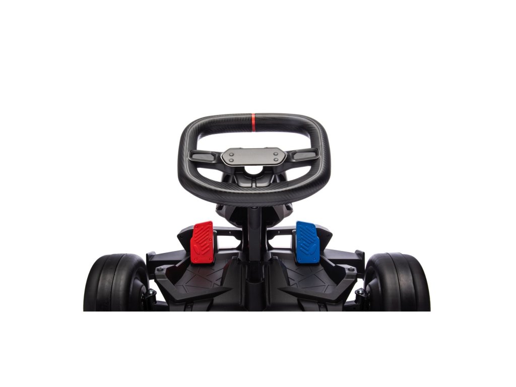 Kart electric pentru copii cu baterie de 24V 9Ah și două motoare de 200W nu trebuie să lipsească din nicio gară pentru copii. Kartul este echipat cu un scaun cu formă sportivă. Kartul are o capacitate de încărcare de 60 kg, fiind destinat copiilor mai mari. Kartul atinge o viteză de 9 - 12 km/h. Roțile din față sunt fabricate din spumă EVA, iar roțile din spate sunt fabricate din plastic, datorită acestei caracteristici, kartul își poate folosi funcția de drift.