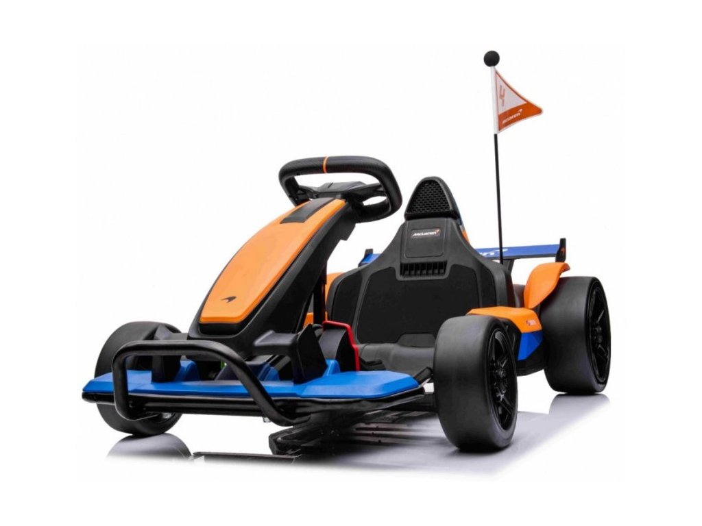 Echipamentul include lumini LED și roți față din spumă EVA . Confortul este asigurat de un scaun bine modelat, iar panoul muzical de pe volan asigură divertisment mai plăcut. Capacitatea de încărcare a kartului electric McLaren Drift este de până la 60 kg .