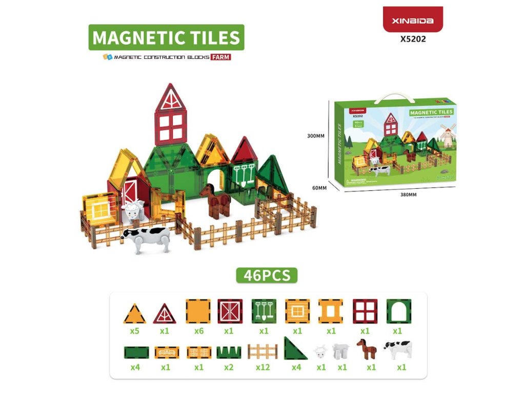 Cuburi magnetice colorate din seria ferma pentru copii de la 3 ani. Setul contine 42 de cuburi de diferite culori si forme. Pe lângă cuburi, avem la dispoziție și o siluetă de oaie, cal și vacă . Puteți construi o fermă din blocuri, ghidul de imagini arată cum să o faceți pas cu pas, dar puteți construi și ferma după propriile idei. Jocul cu blocuri stimulează imaginația și creativitatea copiilor, exersează dexteritatea manuală și concentrarea.