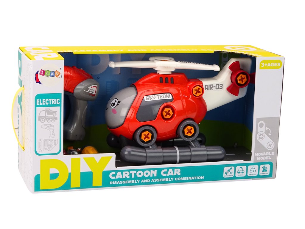 Jucăria vine și cu o trusă de instrumente care include un burghiu, șurubelniță, cheie și trei vârfuri interschimbabile. Aceste instrumente sunt special concepute pentru mâinile mici, astfel încât copiii să poată demonta și asambla elicopterul în siguranță și cu ușurință. Aceasta este o oportunitate excelentă de a te simți ca un adevărat mecanic și de a dezvolta abilități manuale, precum și coordonarea ochi-mână.