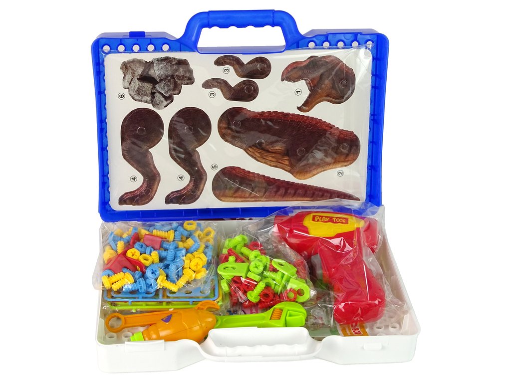 Setul include 2 plăci cu părți ale corpului dinozaurului și 8 plăci cu figuri care pot fi asamblate în diferite configurații. În plus, setul include șuruburi colorate din plastic, capace, un burghiu, o șurubelniță și 2 chei.