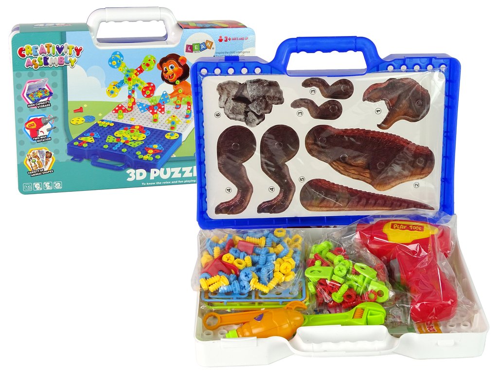 Trusa de construcție a dinozaurilor 3D este setul perfect pentru micii constructori și iubitorii de dinozauri. Setul include instrucțiuni, o carcasă practică și toate piesele necesare pentru a construi un prieten preistoric.