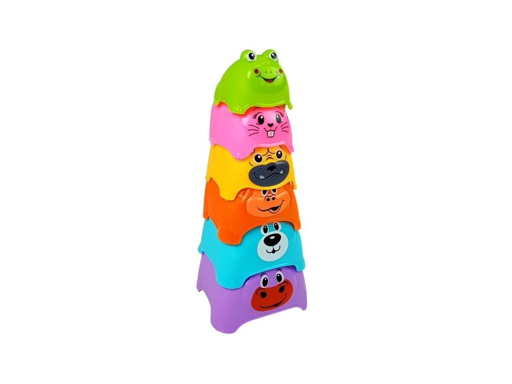 Piramida în culorile curcubeului este o jucărie care afectează perfect dezvoltarea copilului. Este format din cupe de diferite culori cu motive animale. În vârful piramidei se află cea mai mică ceașcă în formă de broască. Cupele sunt fabricate dintr-un material sigur, non-toxic, sigur și durabil.