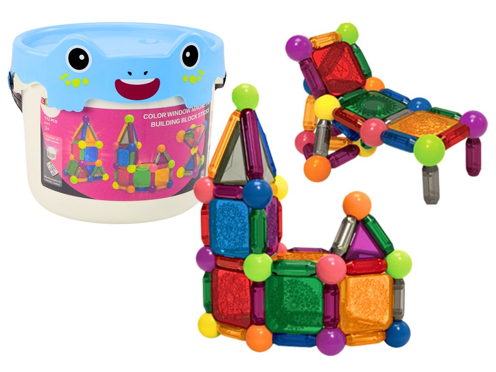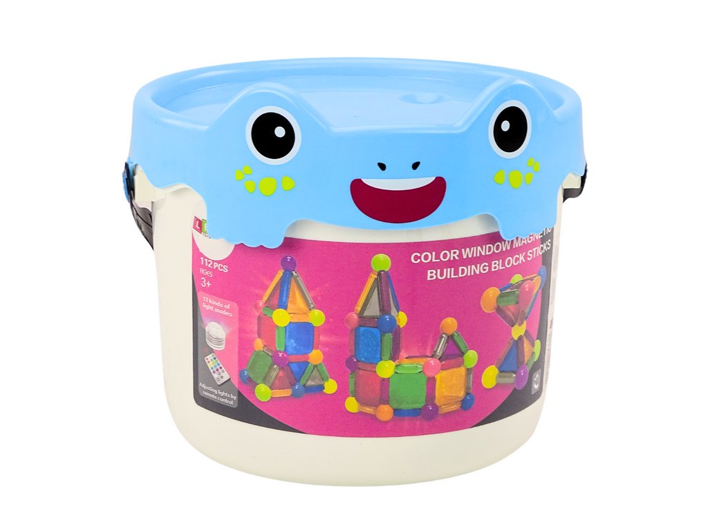 Blocuri de construcție magnetice cu iluminare într-o găleată de 112 părți