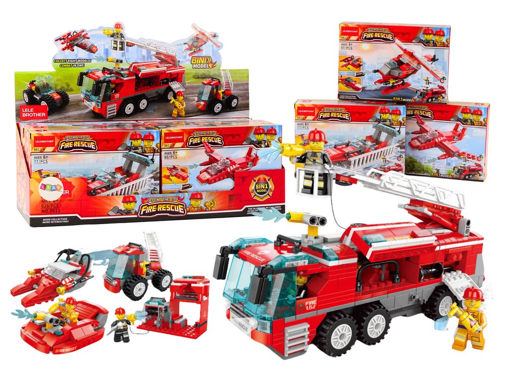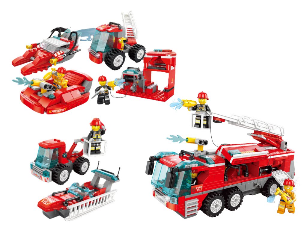 Trusa de construcție cu motivul mașinilor de pompieri oferă copiilor ore de distracție creativă și educație. Setul include o varietate de modele precum motociclete, bărci, avioane și vehicule de teren, care le permit copiilor să exploreze lumea serviciilor de urgență.