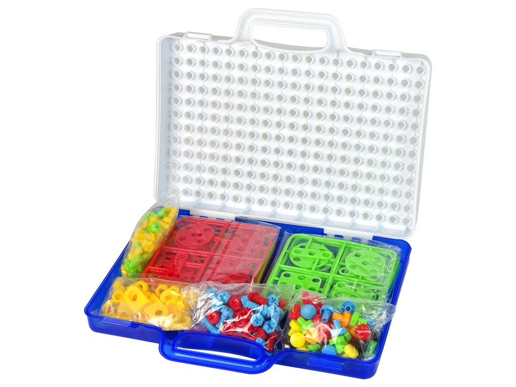 Copiii exersează răbdarea, precizia și motricitatea fină în timpul jocului și, în același timp, se bucură de ore întregi de distracție. O carcasă practică cu o placă de înșurubare și o carte de modele facilitează depozitarea și transportul acestei jucării inspiratoare.