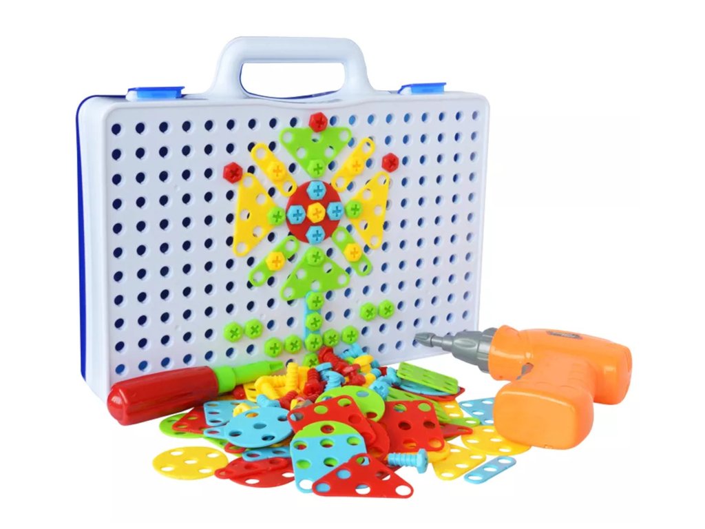 Încurajează creativitatea și dexteritatea micului tău constructor cu acest set fantastic de construcție. Setul conține 237 de piese , șuruburi, șaibe colorate, un burghiu și o șurubelniță, ceea ce permite crearea a până la 43 de modele diferite.