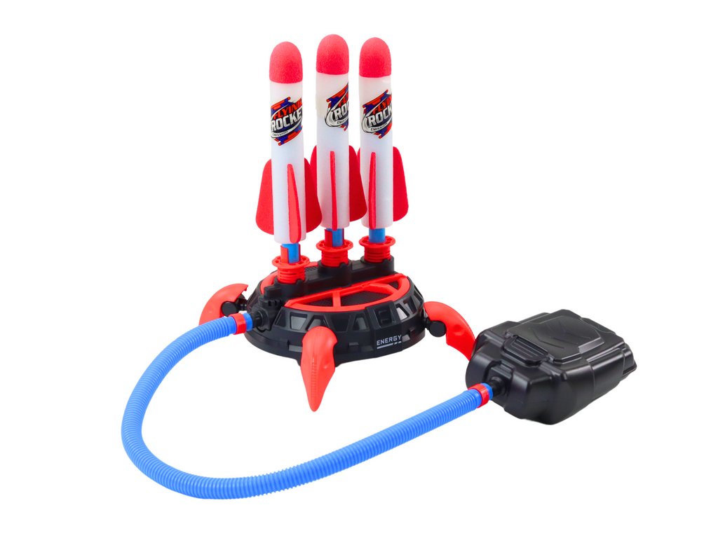 Așezați rachetele pe tubul de colectare de care este atașat tamponul. Apoi apăsați pe tampon cu o mișcare rapidă. Presiunea creată în interiorul jucăriei lansează impresionant racheta sus în aer.