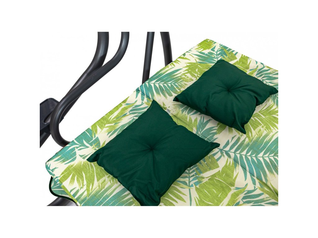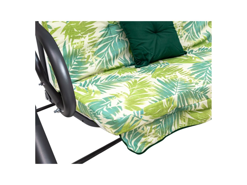 Include două perne matlasate și o pernă de scaun din spumă pentru tapițerie cu grosimea de 10 cm. Leagănul poate fi transformat cu ușurință într-un șezlong sau părțile laterale ale spătarelor pot fi rotite după cum este necesar.