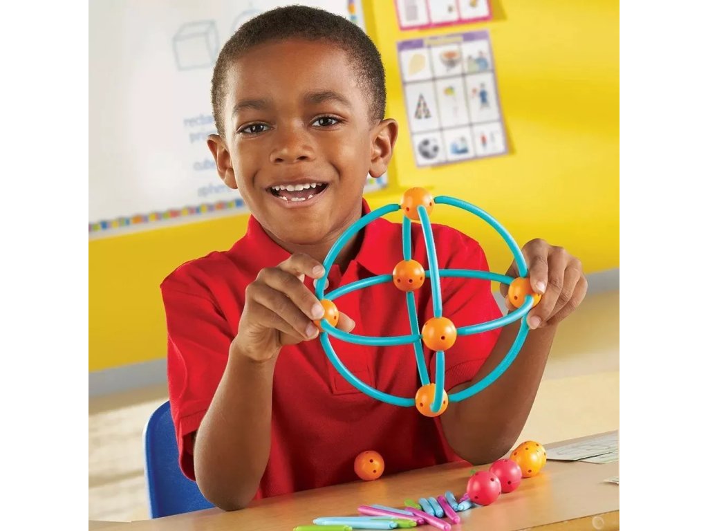 Set conceput pentru lucrul cu forme geometrice 2D și 3D. Permite combinarea diferitelor piese și, în timpul activității, sprijină dezvoltarea gândirii matematice și a abilităților motorii fine la copii.