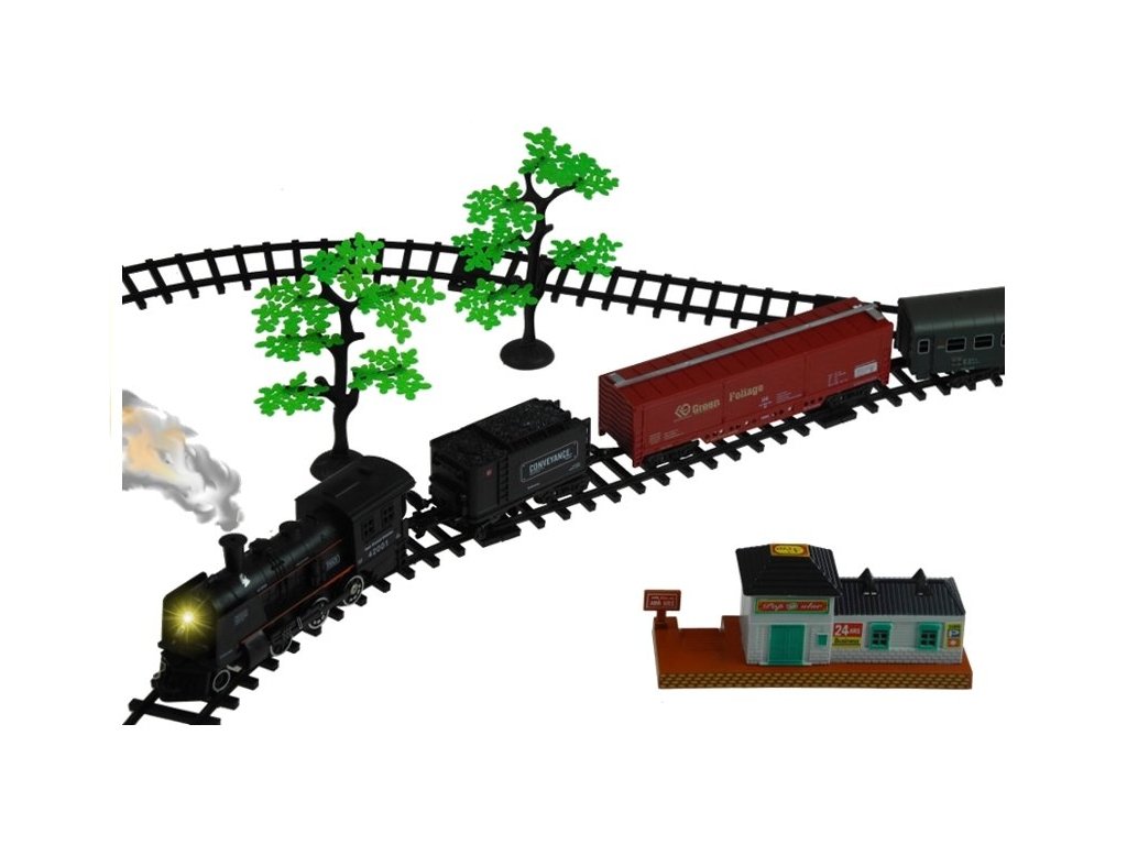 Marele avantaj al setului este traseul în formă de elipsă, ale cărui dimensiuni sunt de aproximativ 78 cm x 156 cm. Datorită unei suprafețe atât de mari, distracția va fi nesfârșită. Un alt avantaj al jucăriei este fumul care iese din hornul locomotivei, precum și elementele de iluminat care sporesc distracția.