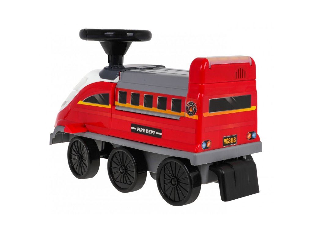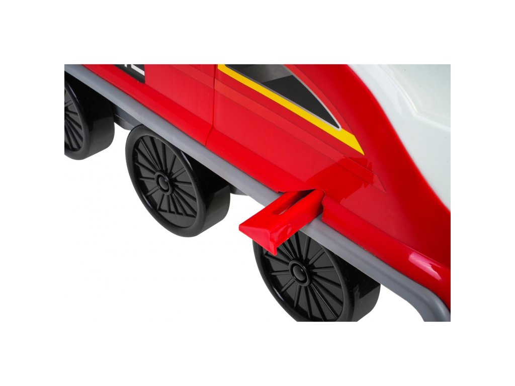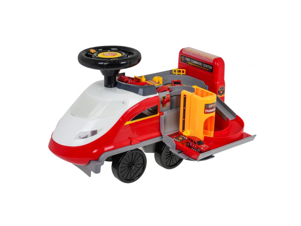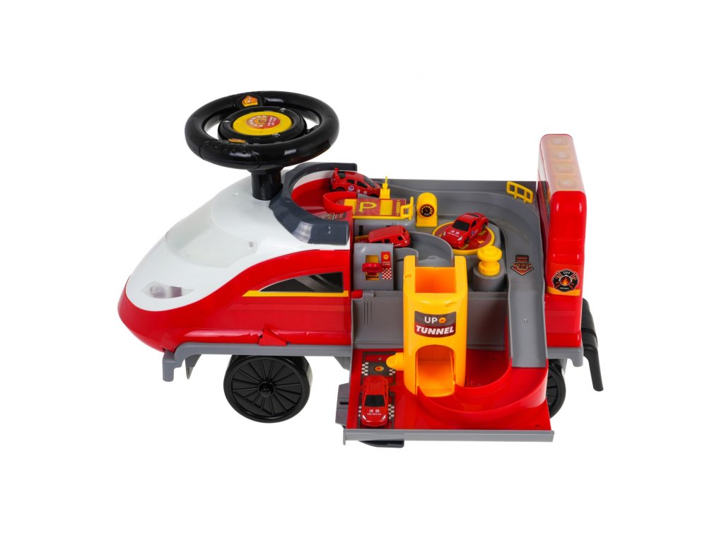 Locomotiva are 6 roți, inclusiv două roți pivotante față. Sub scaun există o parcare de poliție pliabilă cu tobogane, un lift mobil, o barieră de deschidere, un cric și o roată pivotantă. Toate piesele mobile sunt actionate manual. Există și o zonă de depozitare sub parcare pentru comorile copiilor. Tot in fata locomotivei avem un parbriz cu deschidere cu spatiu liber pentru diverse obiecte mici. Laturile locomotivei sunt echipate cu suporturi extensibile pentru picioarele copilului .