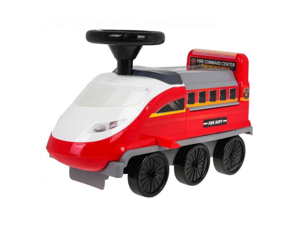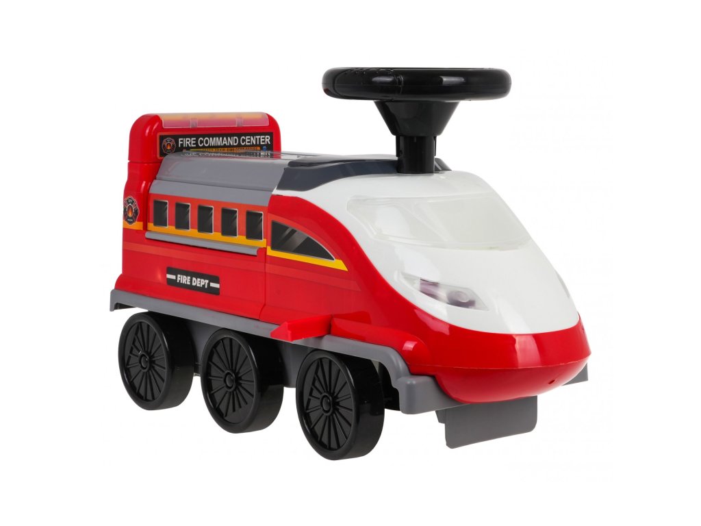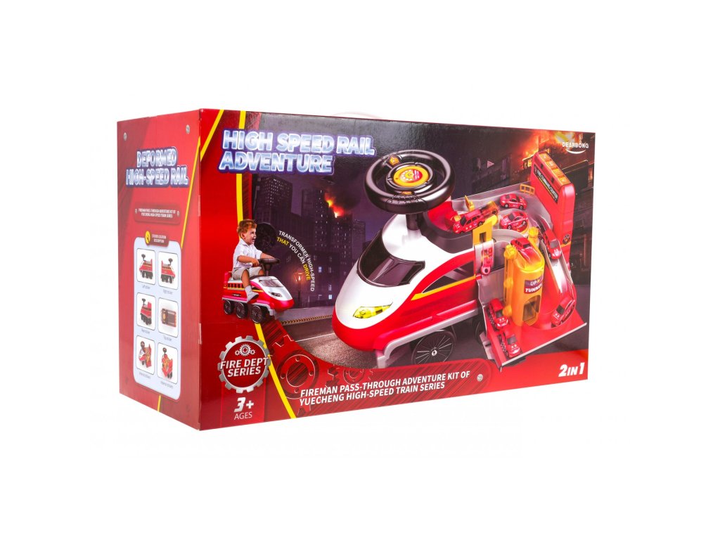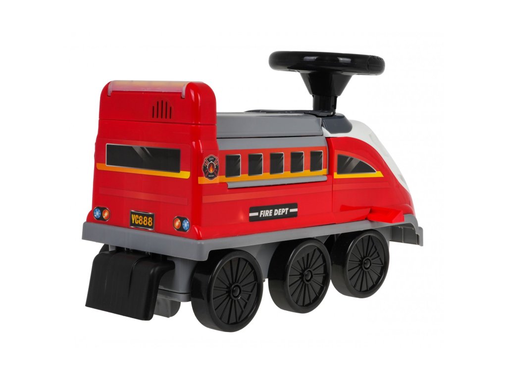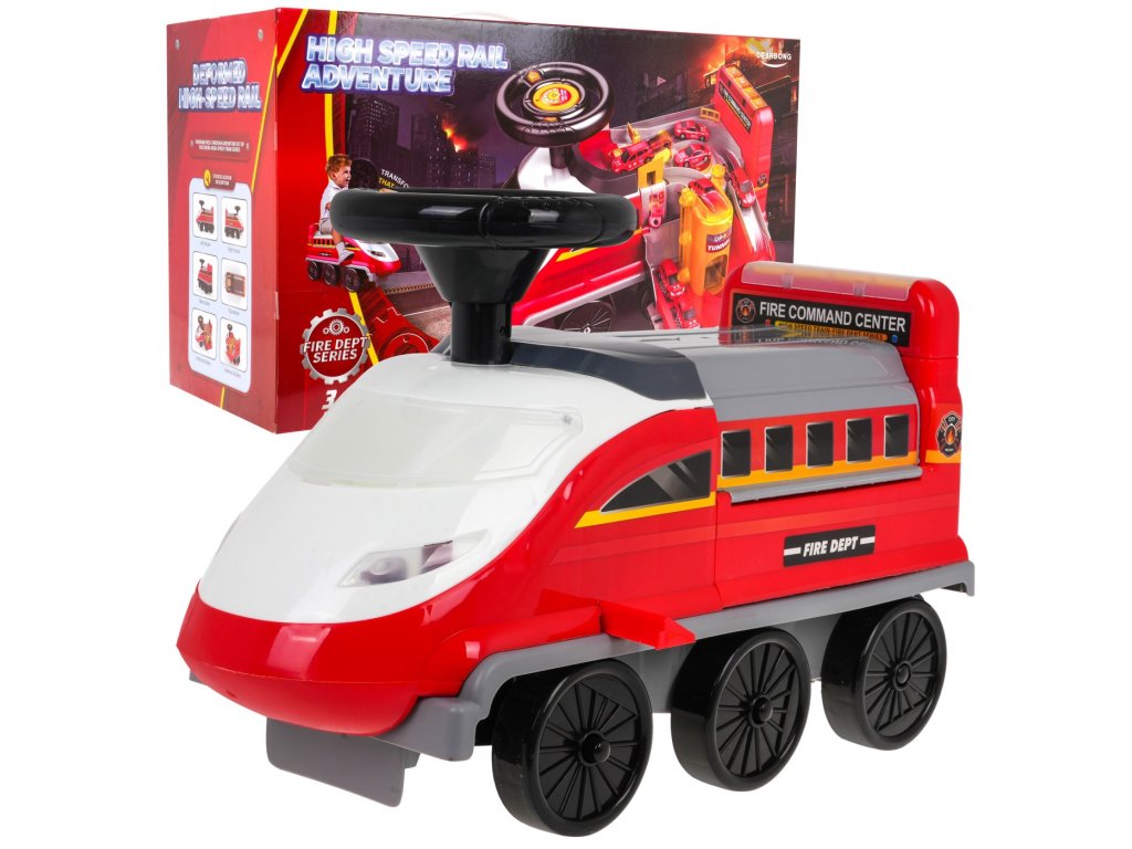 Locomotiva are 6 roți, inclusiv două roți pivotante față. Sub scaun există o parcare de poliție pliabilă cu tobogane, un lift mobil, o barieră de deschidere, un cric și o roată pivotantă. Toate piesele mobile sunt actionate manual. Există și o zonă de depozitare sub parcare pentru comorile copiilor. Tot in fata locomotivei avem un parbriz cu deschidere cu spatiu liber pentru diverse obiecte mici. Laturile locomotivei sunt echipate cu suporturi extensibile pentru picioarele copilului .