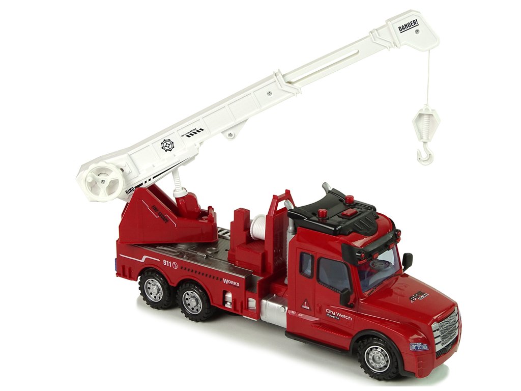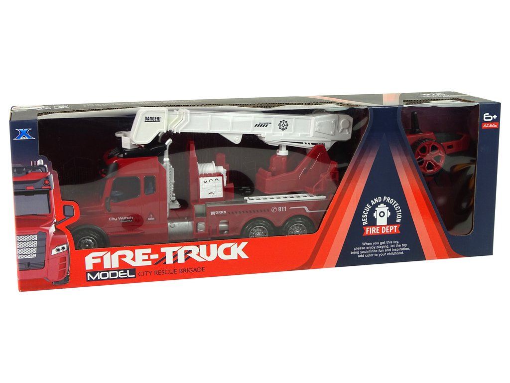 Mașina de pompieri controlată de la distanță este un model realist. Pe spate există o macara lungă, care ajunge până la 34 cm înălțime, și are și un braț extensibil de 10 cm lungime, care extinde și mai mult raza de acțiune. O roată rotativă din partea dreaptă a mașinii coboară cârligul de cablu. Acum micul pompier poate ajunge oriunde, poate stinge un foc mare sau poate muta lucrurile dintr-un loc în altul. Driverul are o frecvență de 2,4 Ghz. Operarea controlerului R/C este foarte simplă, iar controlerul este confortabil de ținut în mână. Cu ajutorul acestuia, operatorul poate conduce mașina în direcția sa, poate schimba direcția de deplasare înainte/înapoi și dreapta/stânga.