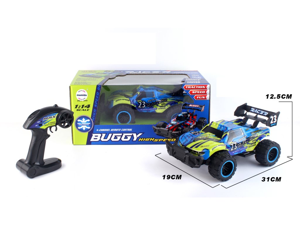 Experimentează o cursă rapidă cu Buggy RC la scara 1:14, care oferă performanță dinamică și un design realist. Datorită telecomenzii de 2.4 GHz, te vei bucura de control fluid, fără interferențe, și poți concura cu mai multe mașini simultan. Mașina atinge o viteză de până la 15 km/h, fiind ideală pentru curse pline de adrenalină, acasă sau în aer liber.