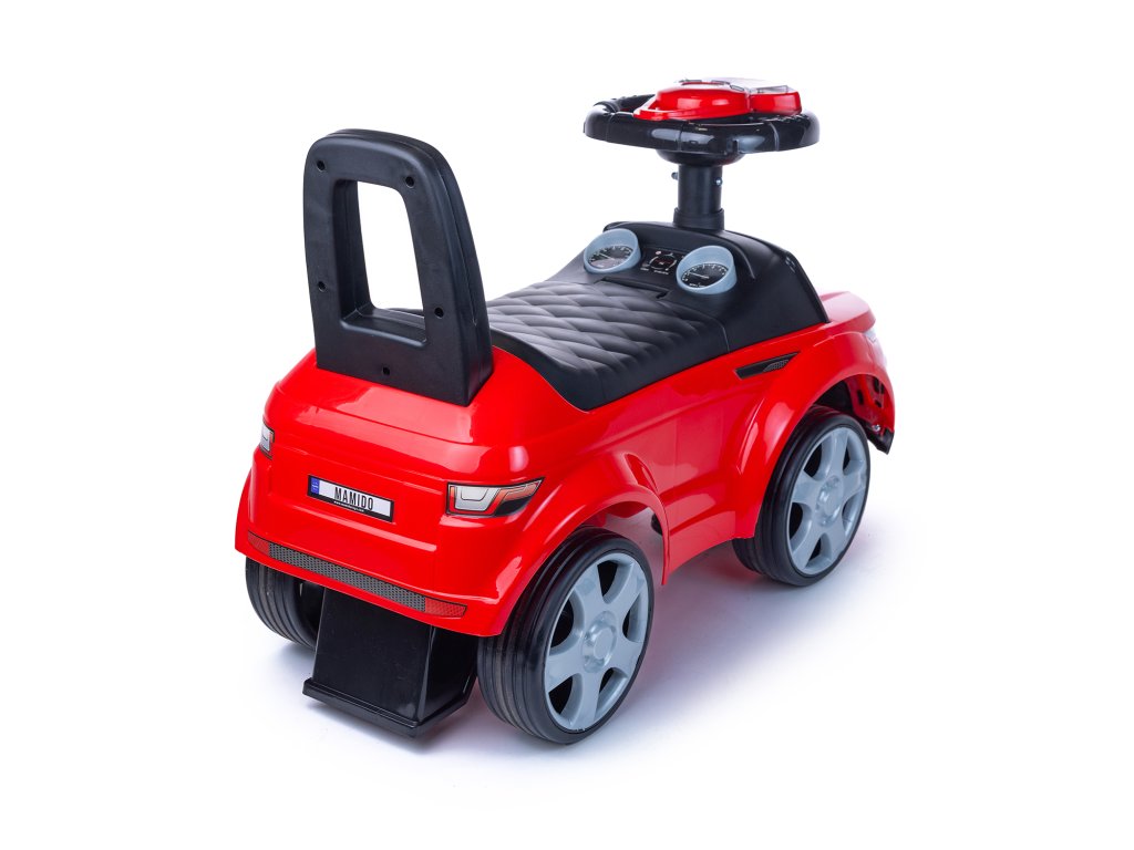 Vehiculul de echilibru roșu are o construcție foarte ușoară, ceea ce îl face ușor de manevrat. În scaunul mare și, mai ales, moale, există spațiu de depozitare pentru obiectele mici ale copilului, de exemplu, jucării pe care vrea să le ia cu el la plimbare. Spătarul confortabil atașat la scaun va asigura că micuțul menține o postură dreaptă în timp ce se joacă și, de asemenea, se simte confortabil. Roțile mari și late vă permit să alegeți diferite suprafețe, ceea ce va face ca mașina să meargă acasă și în grădină. Capacitatea maximă este de 27 kg, așa că cu siguranță va servi copilului dumneavoastră mult timp.