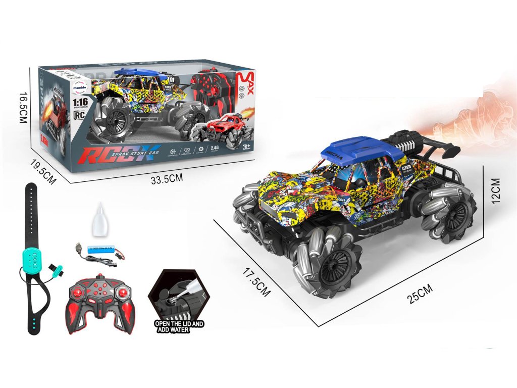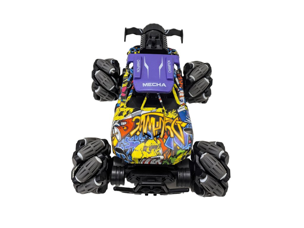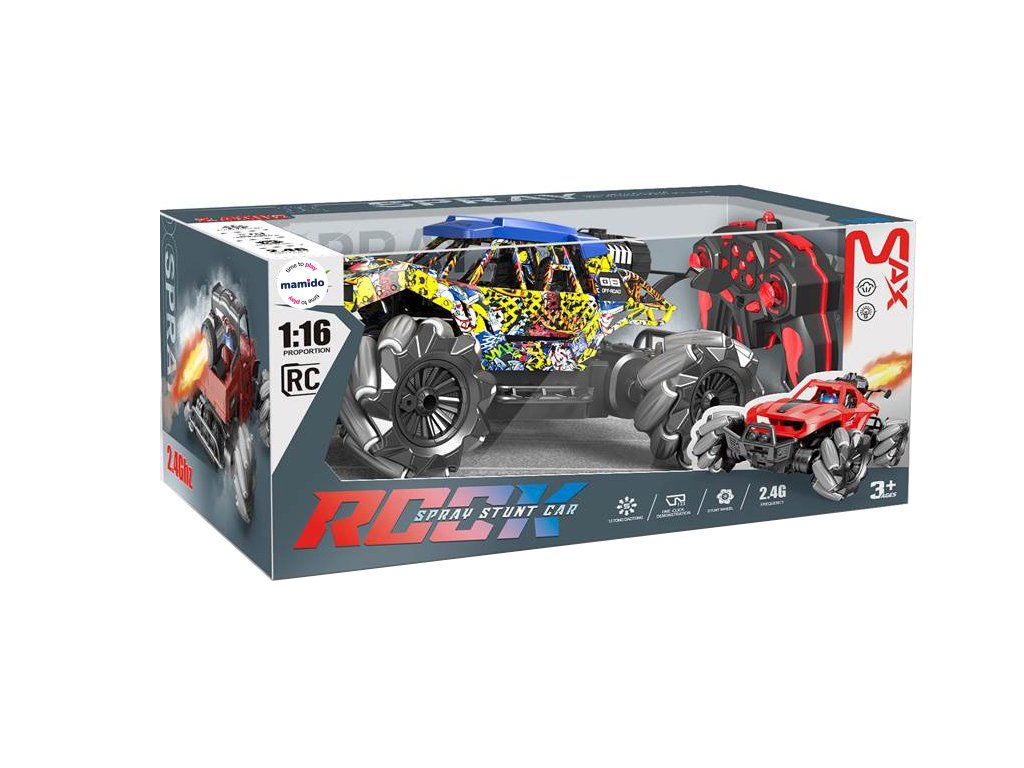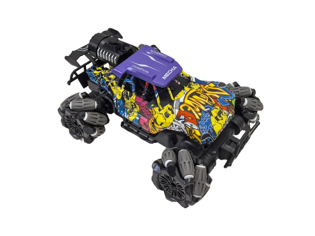 Ațiune, efecte de lumină și spectacol de fum într-unul singur! Mașina RC la scara 1:16 poate merge înainte, înapoi, lateral și diagonal. Datorită tracțiunii 4x4 și a sistemului special de roți, stăpânește driftul lateral și mișcarea lină pe diverse suprafețe. Modul automat de demonstrație va prezenta singur trucuri, iar spray-ul eficient cu lumini LED va adăuga o atmosferă impresionantă la condus.
