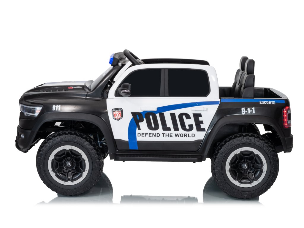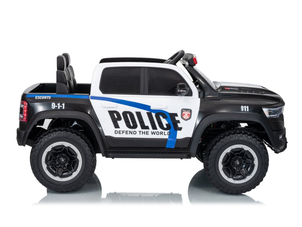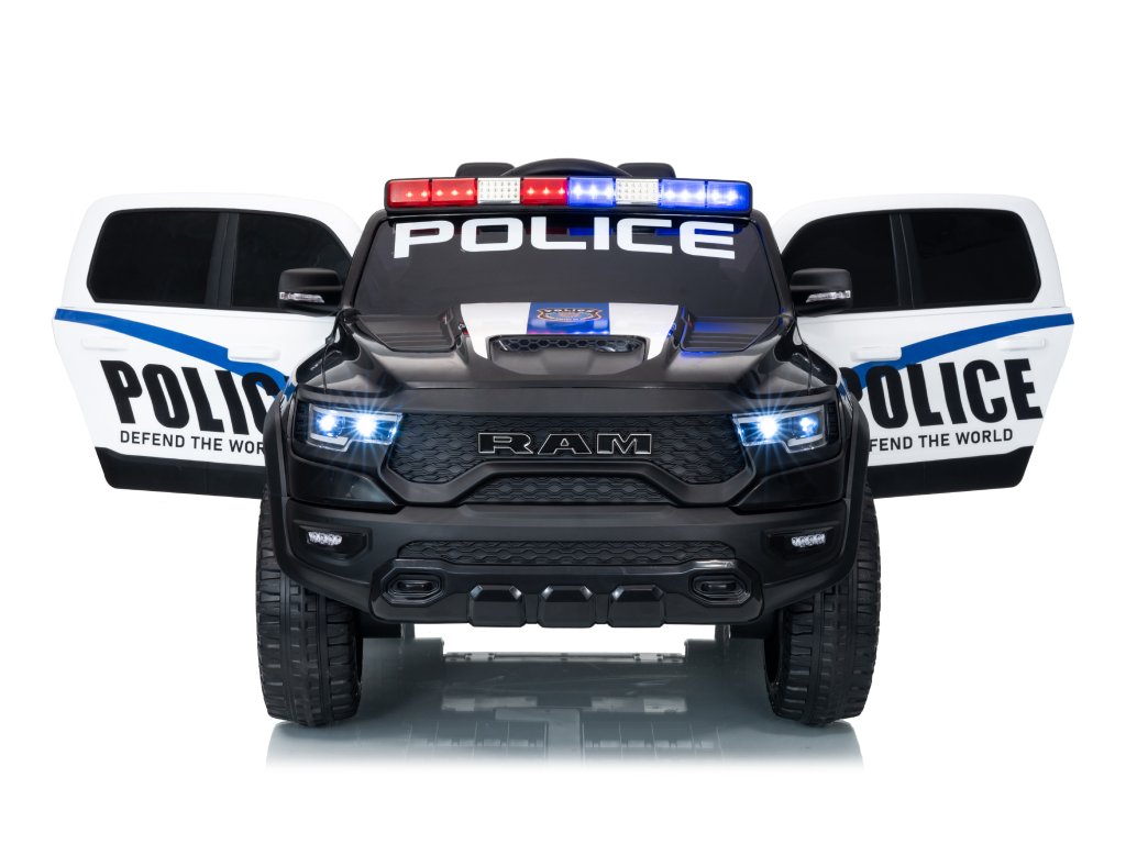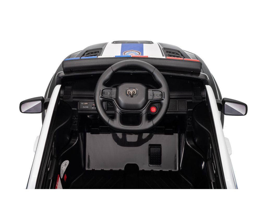 Mașinuța electrică de poliție Dodge Ram nu trebuie să lipsească din niciun garaj pentru copii. Mașinuța este alimentată de o baterie cu o capacitate de 12V 10Ah. Sarcina maximă a vehiculului este de 30 kg. În timpul mersului, copilul va fi cu siguranță captivat de panoul muzical cu Bluetooth, MP3 și cu intrare USB.