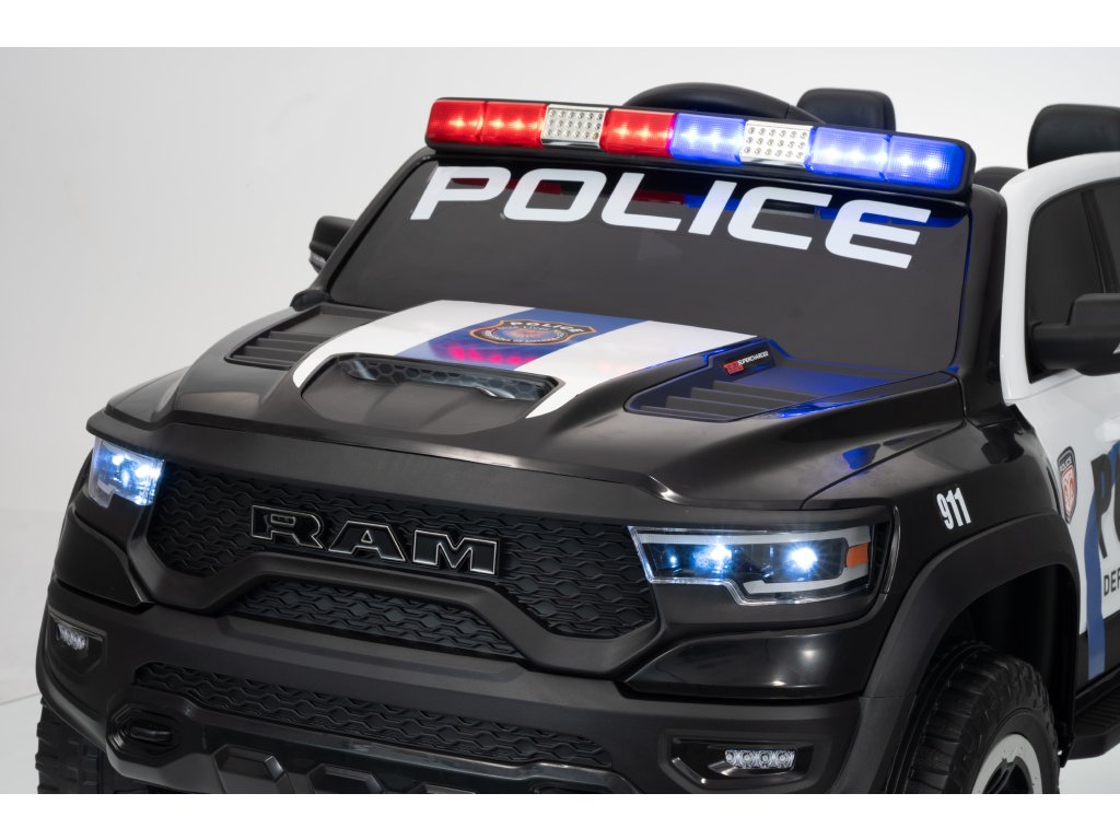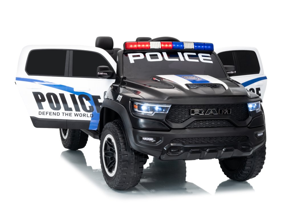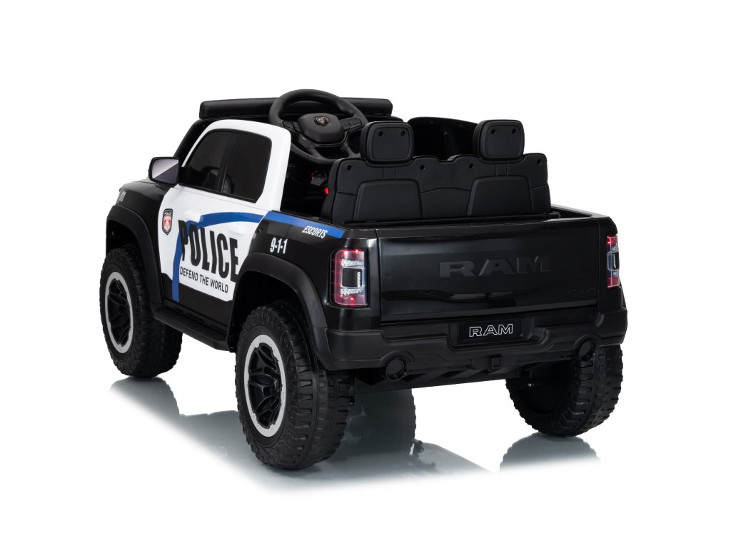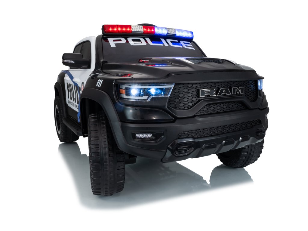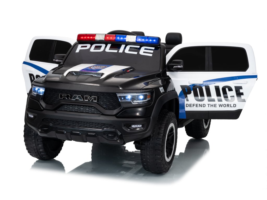 Mașinuța electrică de poliție Dodge Ram nu trebuie să lipsească din niciun garaj pentru copii. Mașinuța este alimentată de o baterie cu o capacitate de 12V 10Ah. Sarcina maximă a vehiculului este de 30 kg. În timpul mersului, copilul va fi cu siguranță captivat de panoul muzical cu Bluetooth, MP3 și cu intrare USB.
