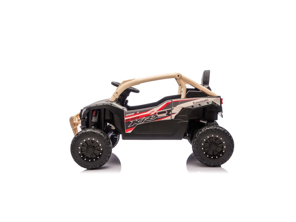 Mașinuță elegantă pentru copii Buggy Kawasaki TERYX KRX1000 este alegerea ideală pentru micii șoferi cărora le place să conducă pe teren accidentat și pe suprafețe netede. Sistemul puternic de 24V cu patru motoare (2× 20W în față, 2× 45W în spate) va asigura suficientă putere chiar și pentru teren accidentat. Mașinuța este echipată cu roți moi din EVA, un scaun confortabil din piele și centuri de siguranță. Datorită telecomenzii cu funcție STOP, părinții au întotdeauna controlul asupra mașinuței. Echipamentul include lumini LED, un panou audio cu Bluetooth, MP3, intrare USB și alte funcții.