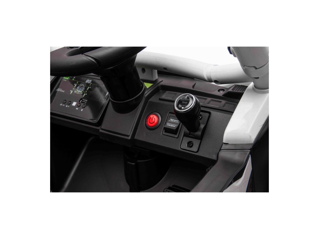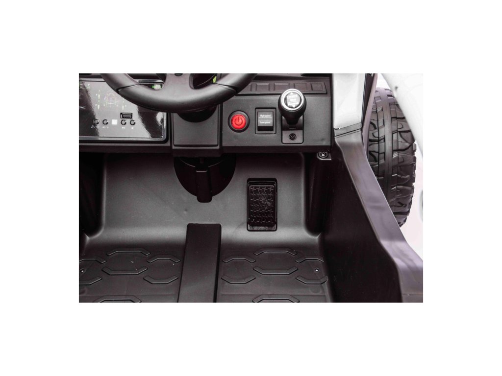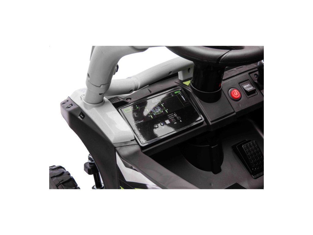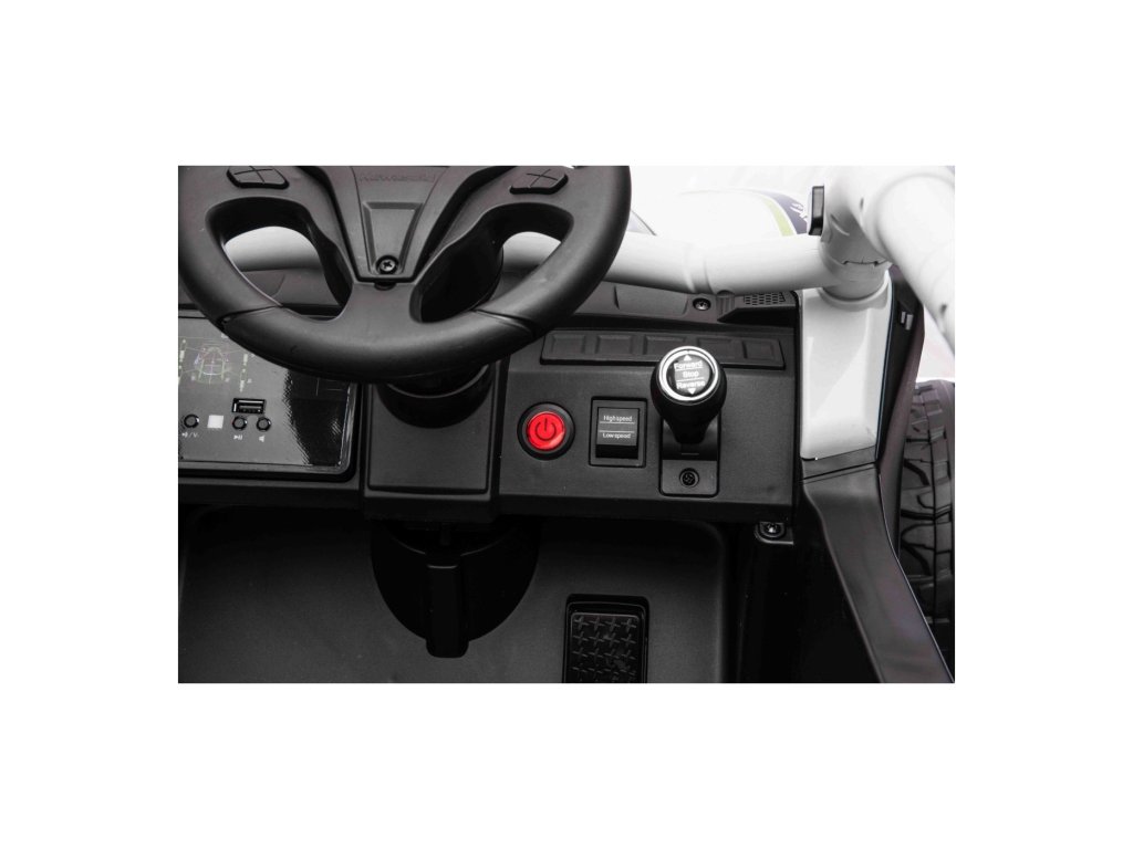 Mașinuță elegantă pentru copii Buggy Kawasaki TERYX KRX1000 este alegerea ideală pentru micii șoferi cărora le place să conducă pe teren accidentat și pe suprafețe netede. Sistemul puternic de 24V cu patru motoare (2× 20W în față, 2× 45W în spate) va asigura suficientă putere chiar și pentru teren accidentat. Mașinuța este echipată cu roți moi din EVA, un scaun confortabil din piele și centuri de siguranță. Datorită telecomenzii cu funcție STOP, părinții au întotdeauna controlul asupra mașinuței. Echipamentul include lumini LED, un panou audio cu Bluetooth, MP3, intrare USB și alte funcții.