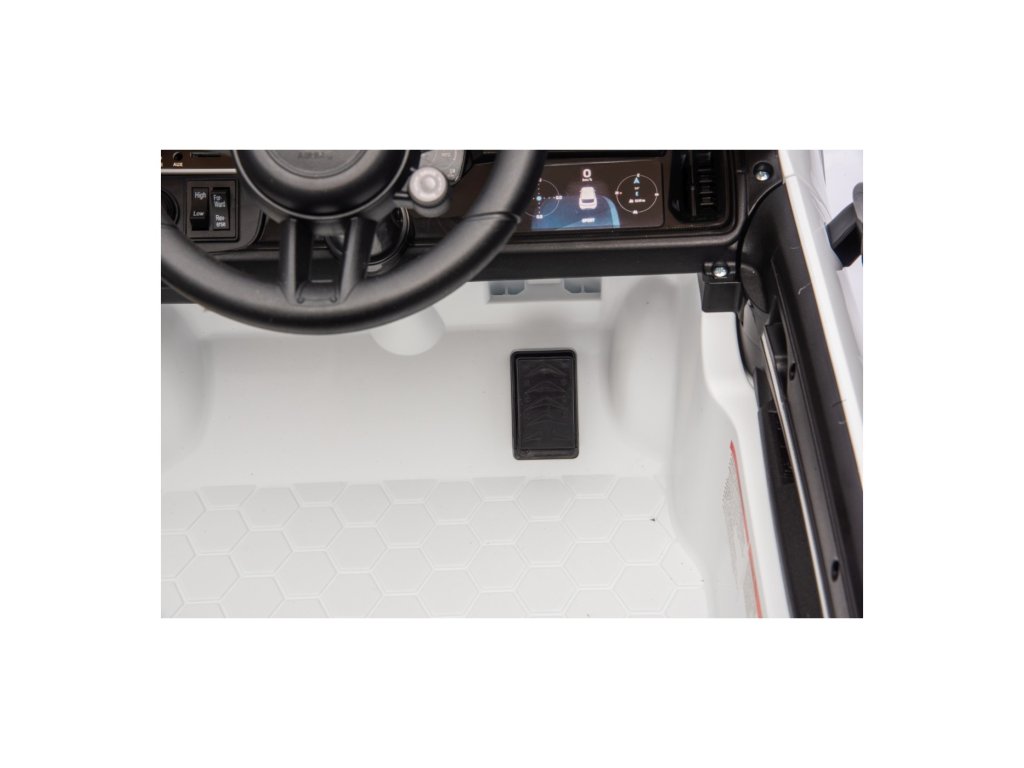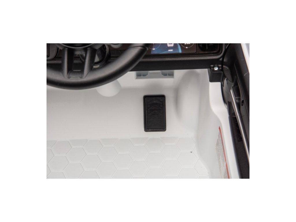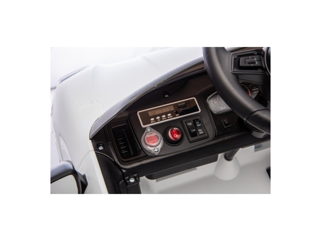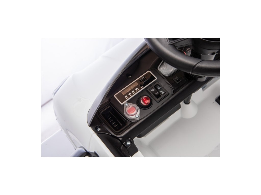 Mașinuța poate fi controlată cu ajutorul telecomenzii, pe care se poate regla viteza vehiculului, schimba direcția de mers sau folosi butonul de siguranță Stop, care oprește imediat vehiculul. Vehiculul este echipat cu o funcție de frânare automată care se activează când piciorul este ridicat de pe pedala de accelerație. În plus, centurile de siguranță asigură siguranța.