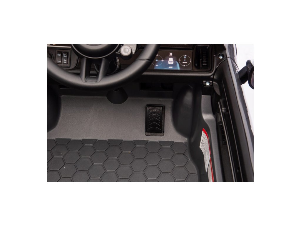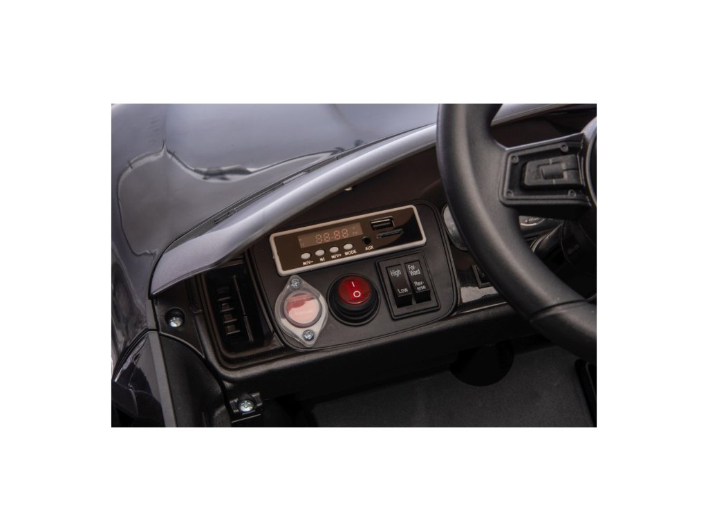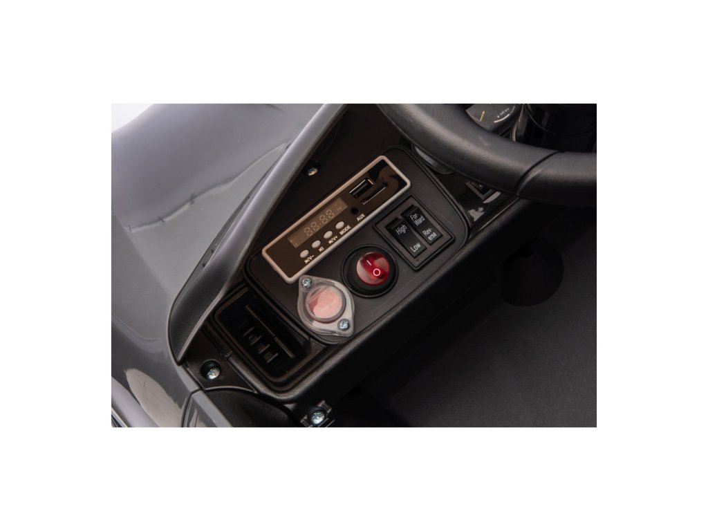 Mașinuța poate fi controlată cu ajutorul telecomenzii, pe care se poate regla viteza vehiculului, schimba direcția de mers sau folosi butonul de siguranță Stop, care oprește imediat vehiculul. Vehiculul este echipat cu o funcție de frânare automată care se activează când piciorul este ridicat de pe pedala de accelerație. În plus, centurile de siguranță asigură siguranța.