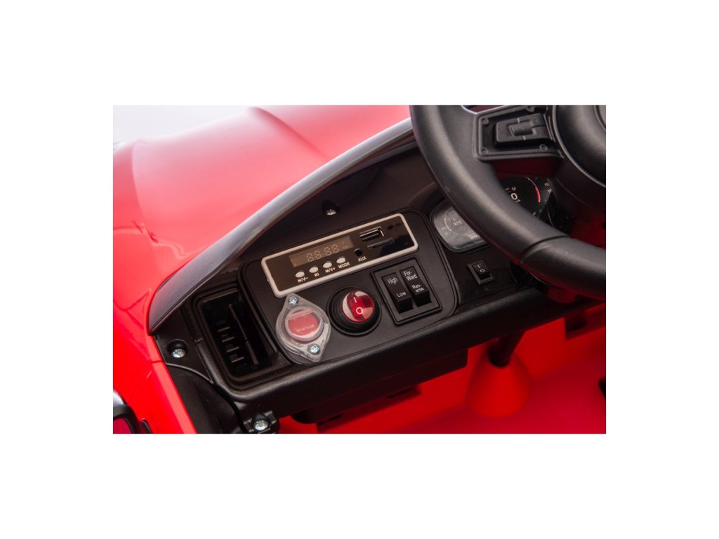 Mașinuța poate fi controlată cu ajutorul telecomenzii, pe care se poate regla viteza vehiculului, schimba direcția de mers sau folosi butonul de siguranță Stop, care oprește imediat vehiculul. Vehiculul este echipat cu o funcție de frânare automată care se activează când piciorul este ridicat de pe pedala de accelerație. În plus, centurile de siguranță asigură siguranța.