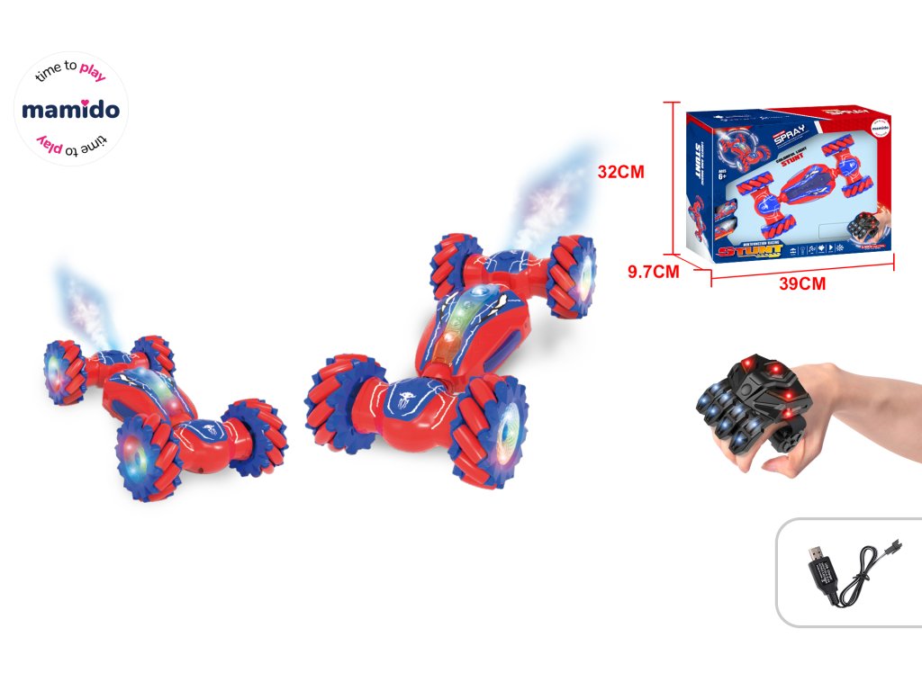 Experimentează o cursă plină de adrenalină cu această mașină RC care poate face mai mult decât doar să meargă! Mașina este echipată cu un control unic prin gesturi, printr-o mănușă specială, datorită căreia mașinuța este controlată doar prin mișcarea mâinii. În plus, adaugă efecte de fum, efecte de lumină și muzică, transformând fiecare cursă într-un spectacol de neuitat.