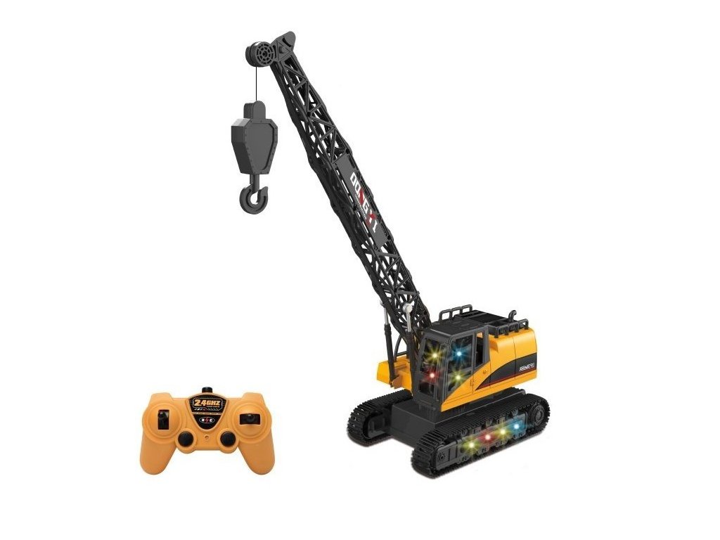 Un macara RC la scara 1:12 va incanta toti micii constructori. Modelul este echipat cu sasiu pe senile, datorita caruia poate merge inainte si inapoi si se poate roti cu usurinta. Macaraua permite rotirea manuala la 360°, iar prin telecomanda se poate ridica si cobori carligul. Pentru o experienta si mai realista, este echipat cu lumini colorate si efecte sonore. Incarcarea este simpla, prin intermediul cablu USB.
