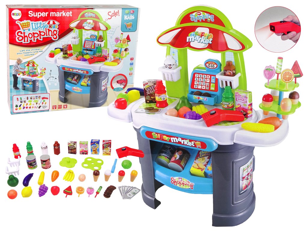 Jocul magazin este unul dintre cele mai populare jocuri pentru copii, așa că nici o cameră pentru copii nu ar trebui să rămână fără acest magazin . Setul include un blat de mancare echipat si un scanner cu efecte de sunet si lumina.