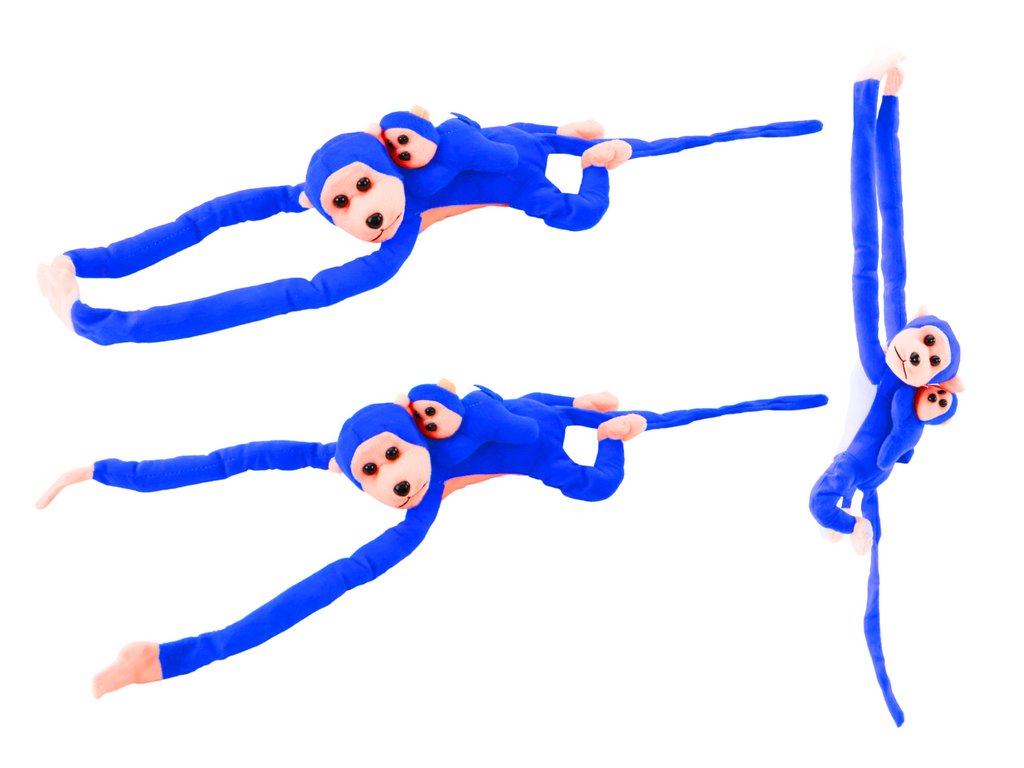 Maimuta de plus cu pui 70 cm albastru