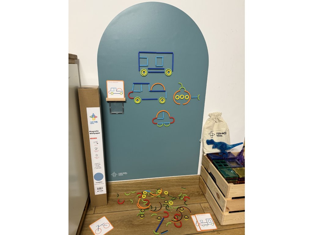Tapetul magnetic Mamido Tiles va aduce copiilor și mai multă distracție, creativitate și învățare datorită puterii magnetice și instalării ușoare. Pur și simplu lipiți-o pe un perete neted și, în cel mai scurt timp, va apărea un spațiu interactiv pentru magneți, desen cu cretă, pictură cu culori lavabile și scris cu marker pe tablă.