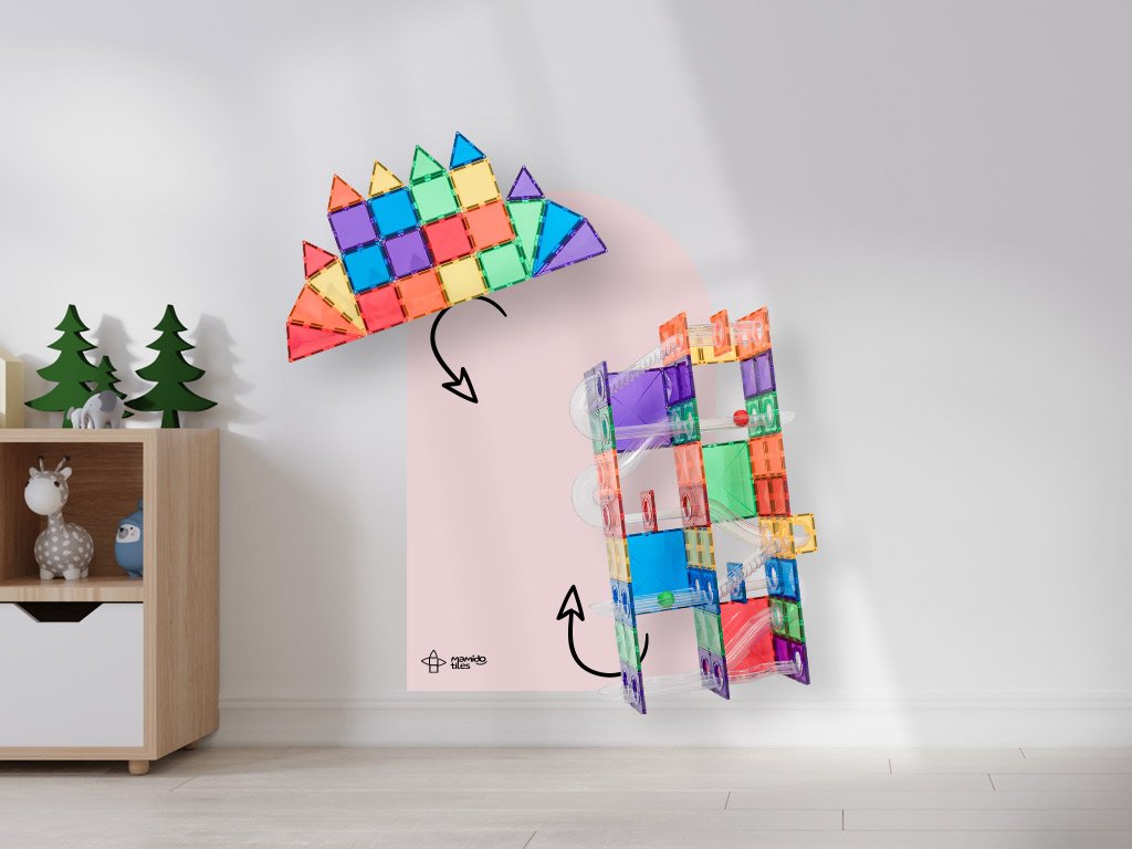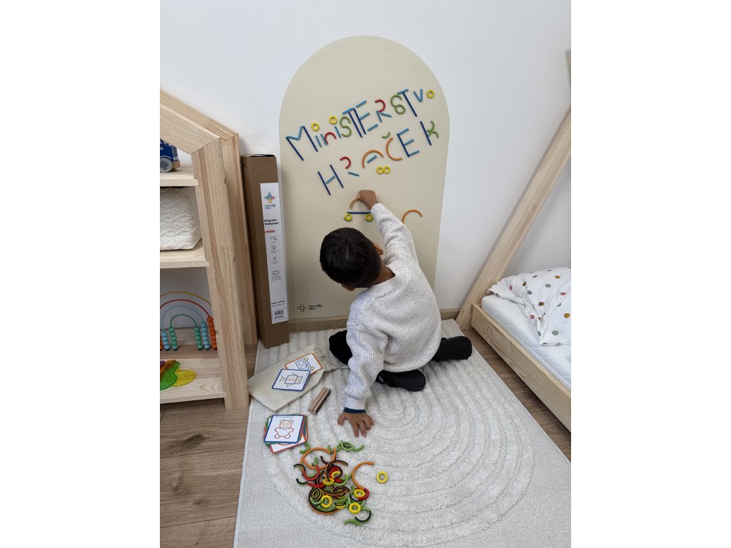 Tapetul magnetic Mamido Tiles va aduce copiilor și mai multă distracție, creativitate și învățare datorită puterii magnetice și instalării ușoare. Pur și simplu lipiți-o pe un perete neted și, în cel mai scurt timp, va apărea un spațiu interactiv pentru magneți, desen cu cretă, pictură cu culori lavabile și scris cu marker pe tablă.