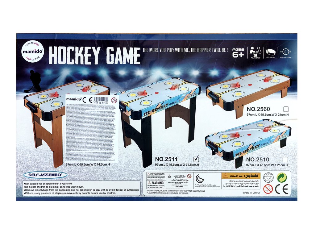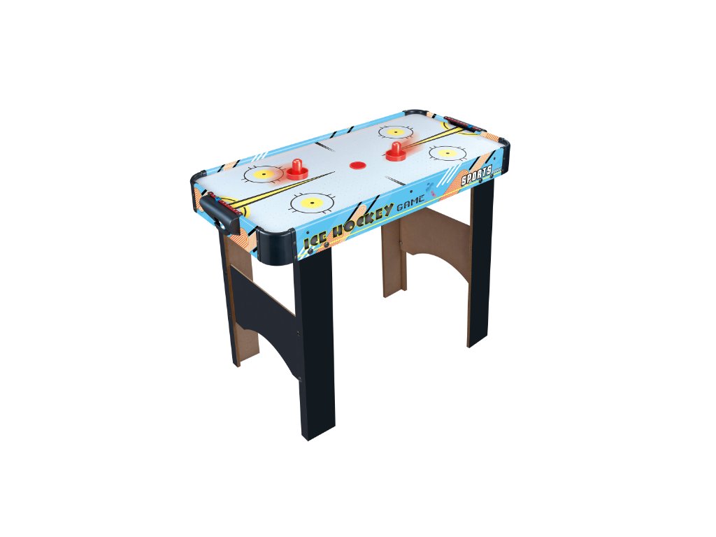 Masa oferă o construcție stabilă, o înălțime confortabilă pentru copii și jucători mai tineri, și o suprafață de joc cu un imprimeu sportiv modern. Datorită ventilației, pucul este constant în mișcare, iar jucătorii pot demonstra reacții rapide și lovituri precise. Pe ambele părți se află contoare manuale de goluri, astfel încât puteți urmări ușor scorul. Mânerele laterale facilitează transportul, iar masa poate fi folosită acasă, în sala de jocuri sau la evenimente de familie.