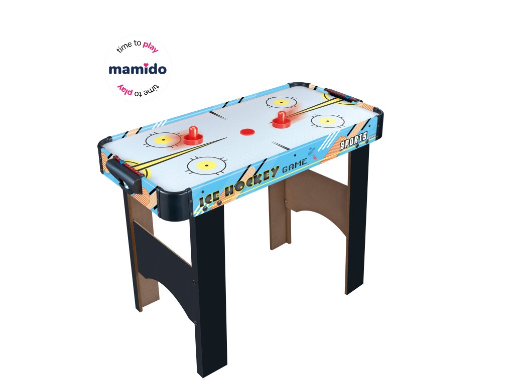 Joc rapid, captivant și mereu distractiv! Acest air hockey de masă pentru copii, într-un design atractiv de culoare albastră, oferă o experiență de joc autentică datorită pernei de aer pe care alunecă perfect pucul. O alegere ideală pentru copiii de la 6 ani, care iubesc competiția și jocurile de mișcare.