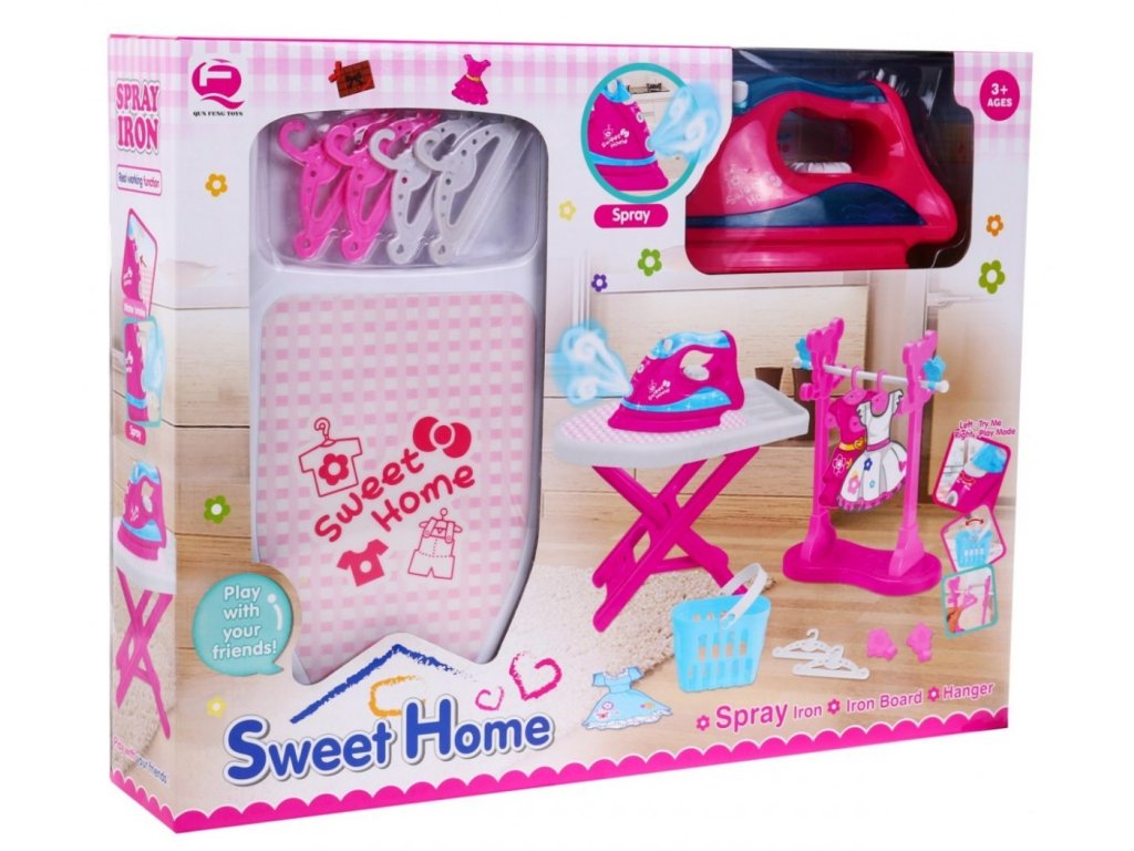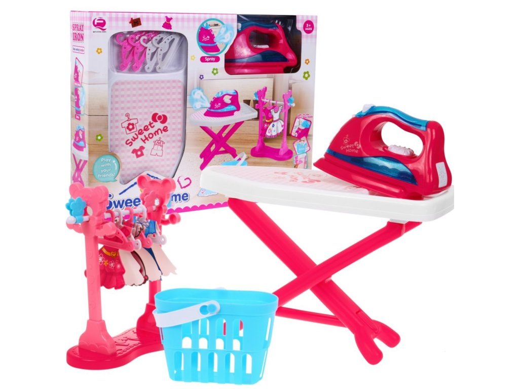 Set de călcat bogat echipat, cu efecte de sunet și lumină. Fierul de calcat este alimentat de la baterii, este iluminat, are rezervor de apa, are functie de abur si emite sunete caracteristice in timpul calcatului. Fierul de călcat are un buton care imită schimbarea temperaturii de călcat.