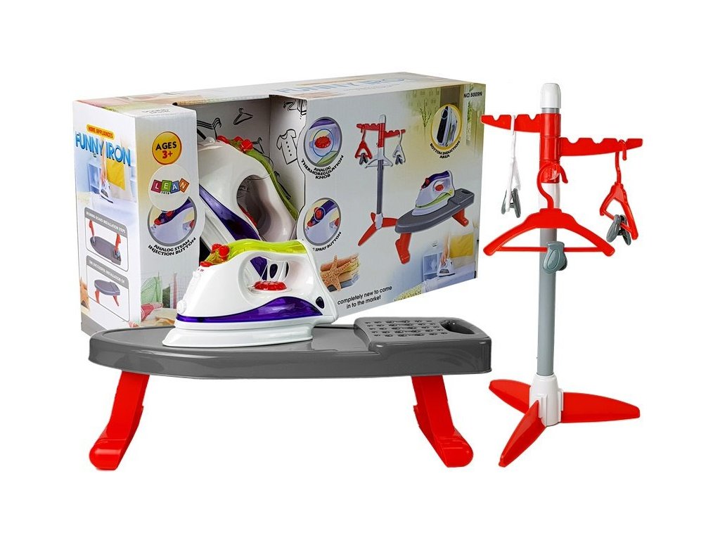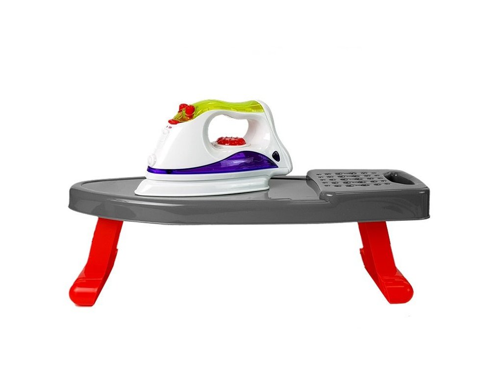 De astăzi puteți avea propriile ajutoare acasă. Masa de călcat are 42 cm lungime, are un decupaj realist în care poți pune fierul de călcat. Fierul de călcat are un buton pentru a controla temperatura, când fierul de călcat este așezat pe tablă, începe să scoată sunete de călcat. Fierul de călcat are o lumină roșie strălucitoare.