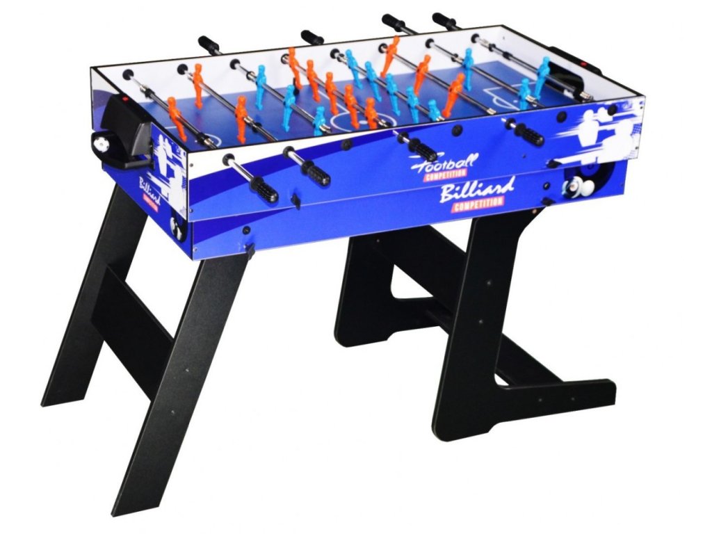 Masa de joc plianta pentru copii le permite copiilor sa joace patru jocuri - biliard, fotbal de masa, air hochei si tenis de masa.