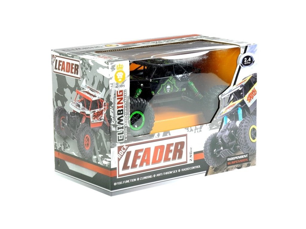 Mașina cu telecomandă Leader R/C este un vehicul care garantează o mare distracție pentru utilizator! Are multe caracteristici care nu sunt disponibile în alte modele de mașini cu telecomandă, cum ar fi tracțiunea 4x4, amortizoare și rezistența la cădere. Șasiul înalt și roțile mari permit conducerea fără probleme pe teren accidentat. Mașina cu telecomandă este controlată de o telecomandă de 2,4 GHz, care asigură o conexiune permanentă cu vehiculul.