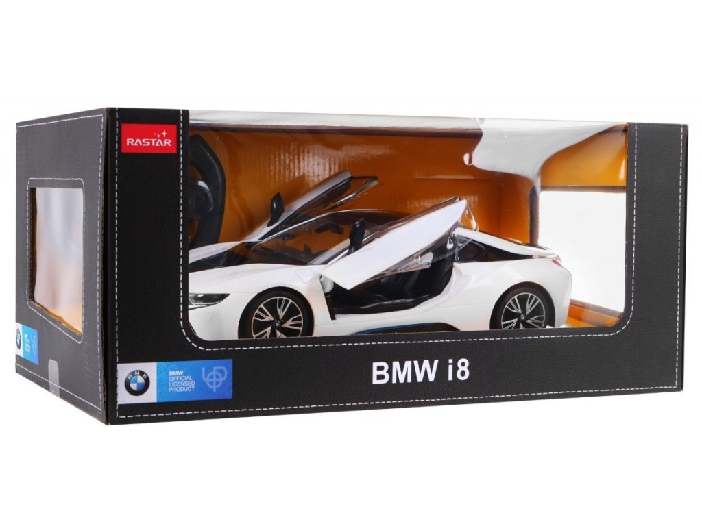 Mașina de jucărie cu telecomandă BMW i8 este un produs licențiat al Rastar. Mașina de jucărie este realizată la scară 1:14. Telecomanda functioneaza pe o frecventa de 27/40 MHz . Folosind telecomanda, putem controla conducerea mașinii de jucărie în toate direcțiile, adică înainte, înapoi, stânga și dreapta.