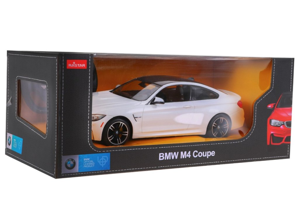 Mașina de jucărie cu telecomandă BMW M4 Coupe este un produs licențiat al Rastar. Mașina de jucărie este realizată la scară 1:14. Telecomanda functioneaza pe o frecventa de 27/40 MHz . Folosind telecomanda, putem controla conducerea mașinii de jucărie în toate direcțiile, adică înainte, înapoi, stânga și dreapta.
