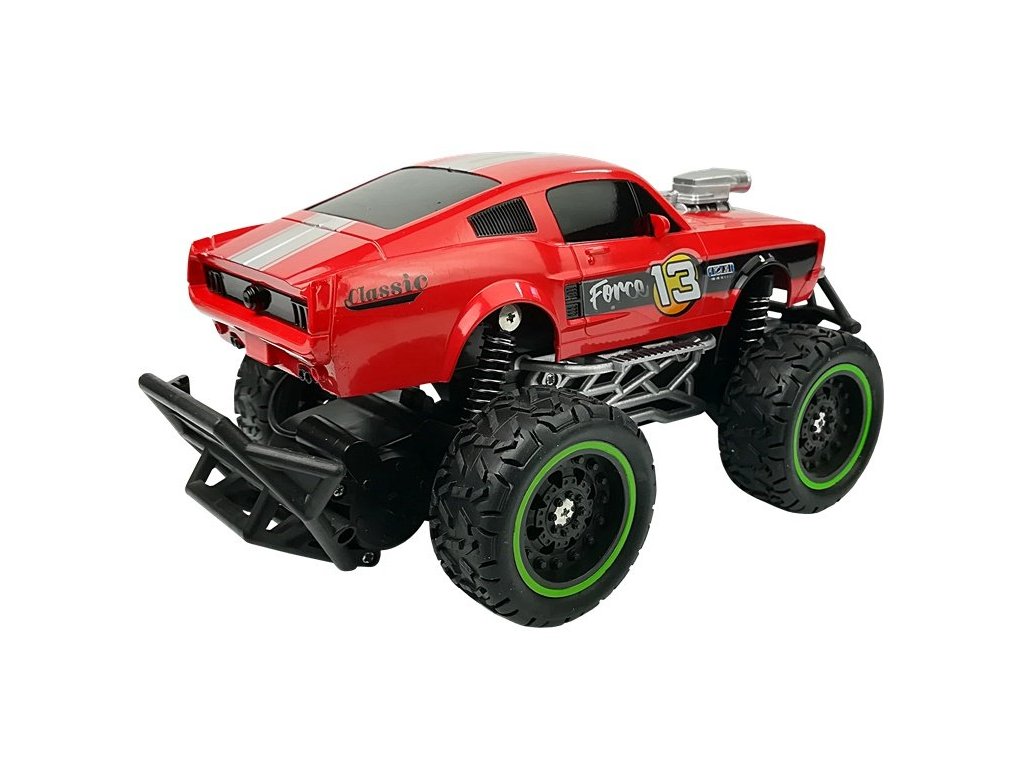 O mașină off-road telecomandată care poate depăși orice obstacol. Functioneaza perfect atat pe asfalt cat si pe pietre denivelate sau acoperire de padure. Roțile moi, din cauciuc ale vehiculului garantează o aderență ridicată pe diferite tipuri de teren, iar amortizoarele mari vă permit să treceți prin obstacole dificile.