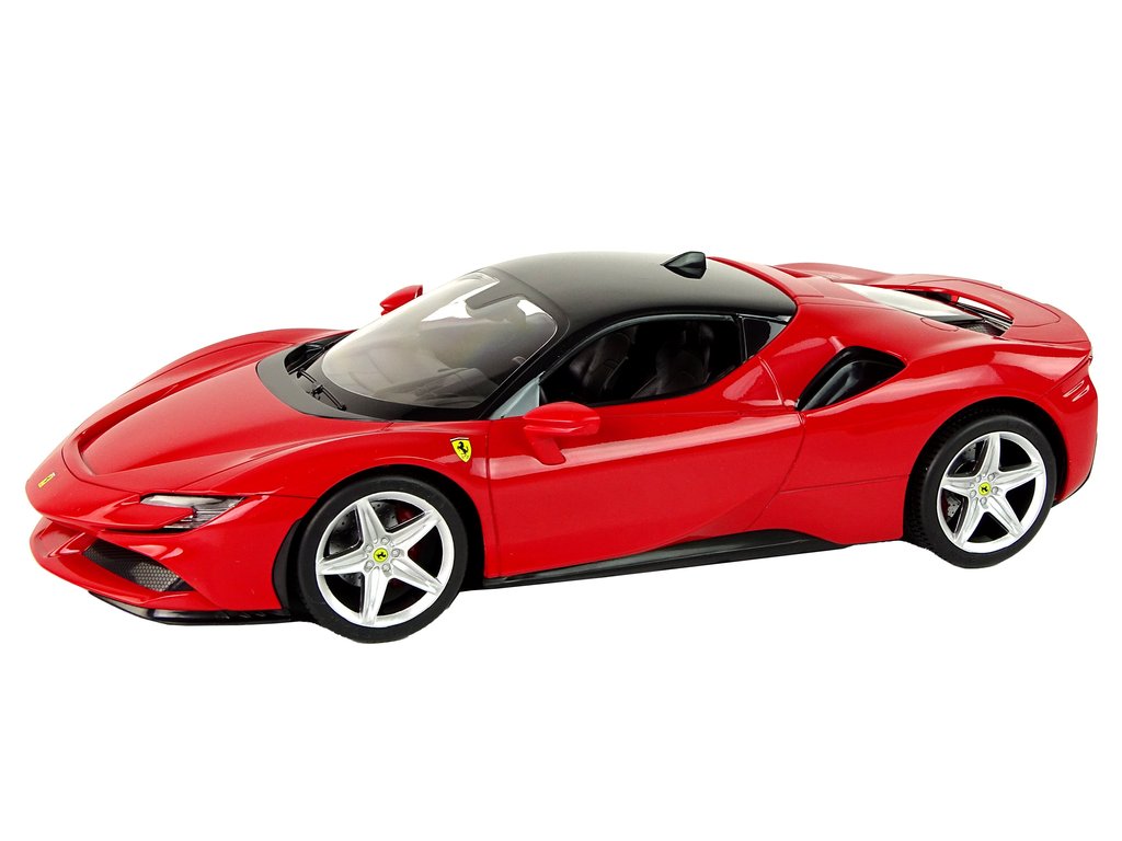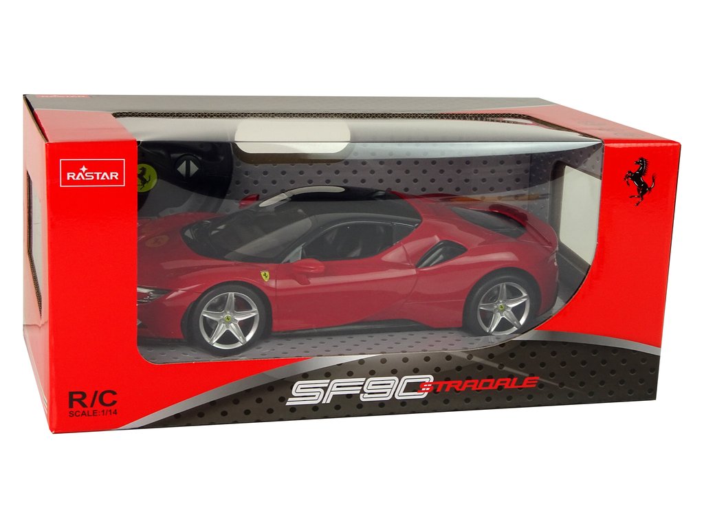 Mașina cu telecomandă Ferrari SF90 la scară 1:14 este un model produs sub licență Ferrari, mașina este reprodusă în cele mai mici detalii. Este un model foarte frumos si rapid. Pe drum, silueta mașinii arată ușoară și dinamică. Suspensia asigură o călătorie lină.