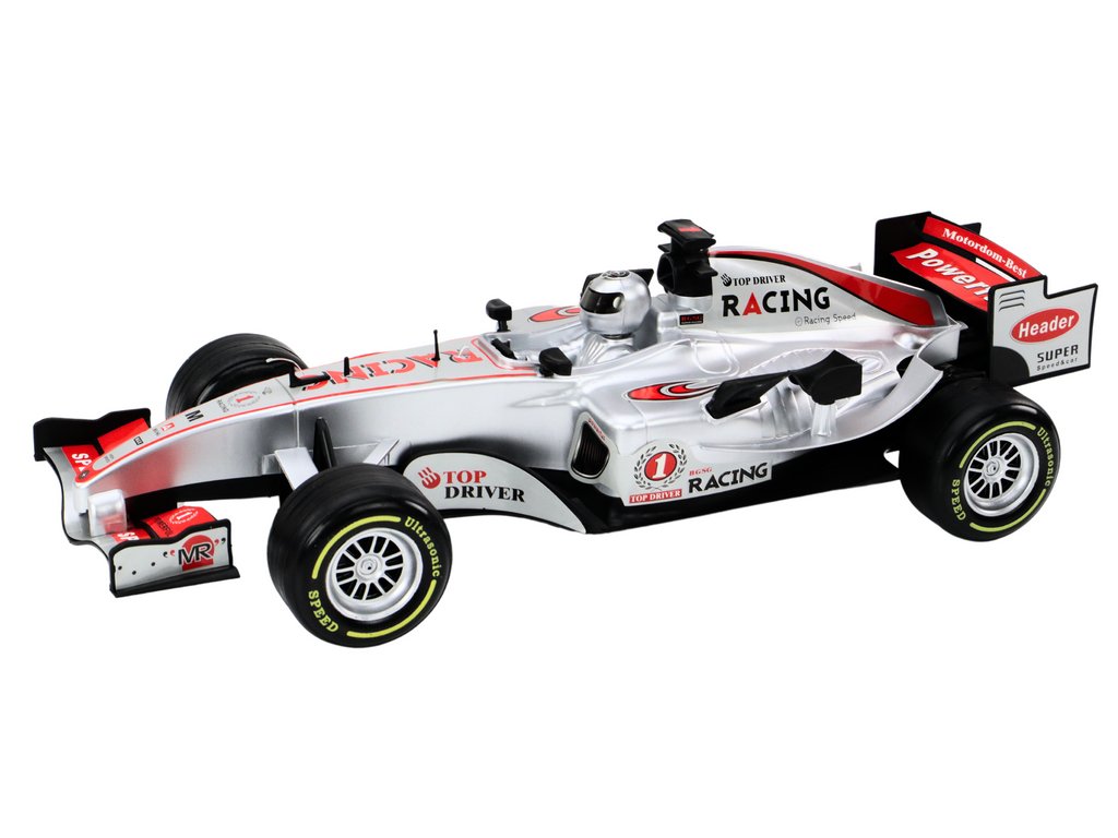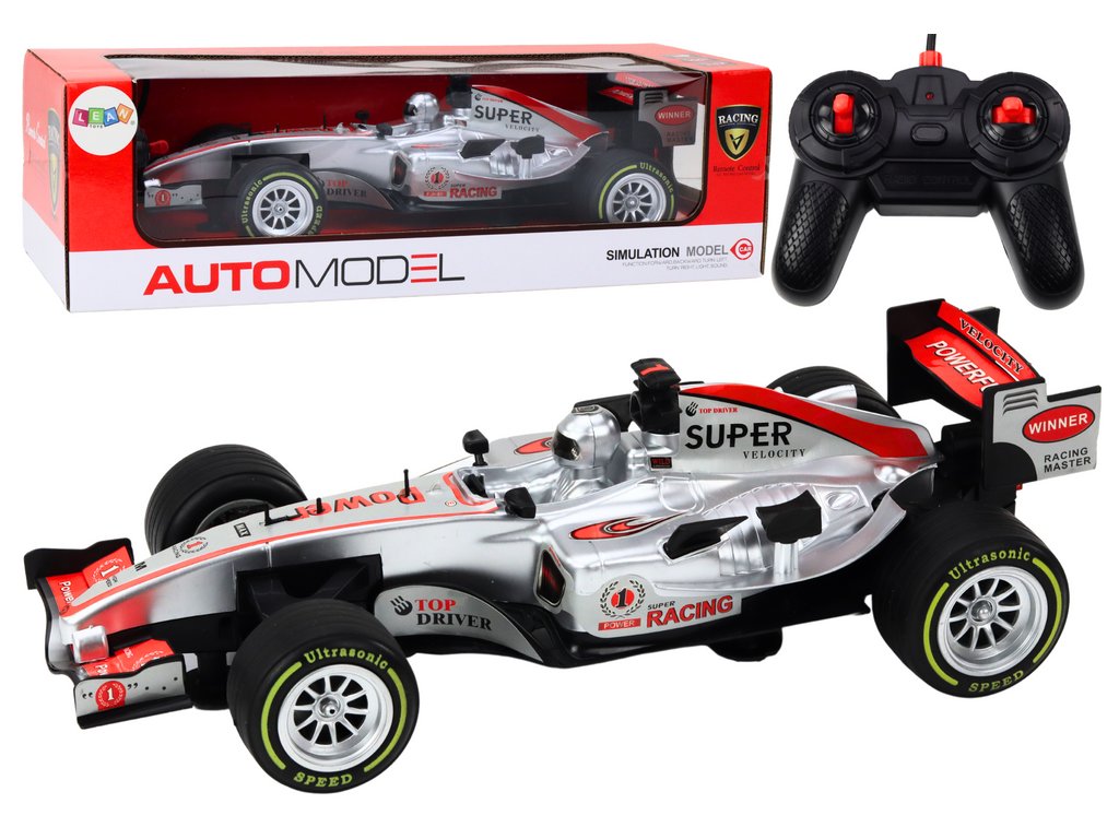Mașină de curse RC 1:12 argintie cu lumini și sunete