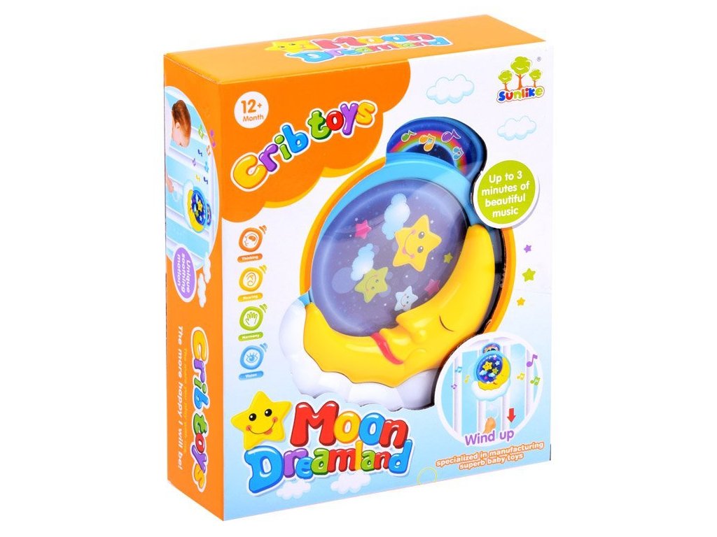 Caruselul muzical lunar este un plus indispensabil pentru camera copiilor. Jucăria cu stea și lună este perfectă pentru a-ți liniști micuții înainte de a adormi. Caruselul redă o melodie moale, liniștitoare. În timpul redării, discul stea se rotește în jurul axei sale. Caruselul este realizat din plastic intr-o culoare pastelata atractiva.