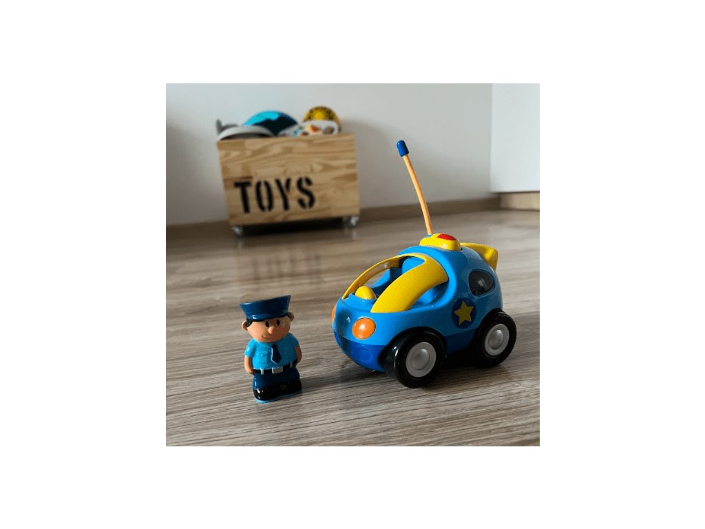 O telecomandă simplă în formă de volan pentru ca copiii mici să învețe rapid și ușor să conducă o mașină. Trei butoane de pe capota mașinii declanșează diverse sunete și totul este însoțit de faruri intermitente. Mașina de poliție de jucărie poate conduce înainte, înapoi și întoarce, luminile din față sunt aprinse în timpul conducerii. Călătoria este dinamică; datorită roților din cauciuc, mașina circulă liniștit și are o aderență excelentă pe podea.