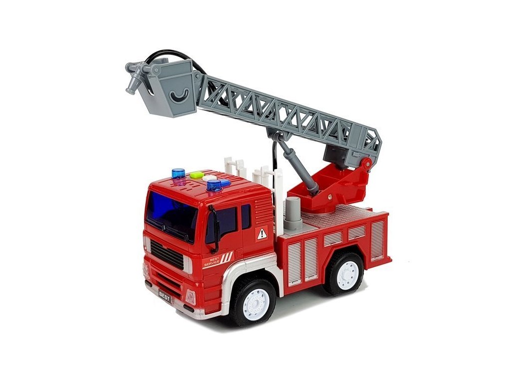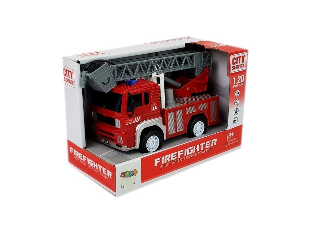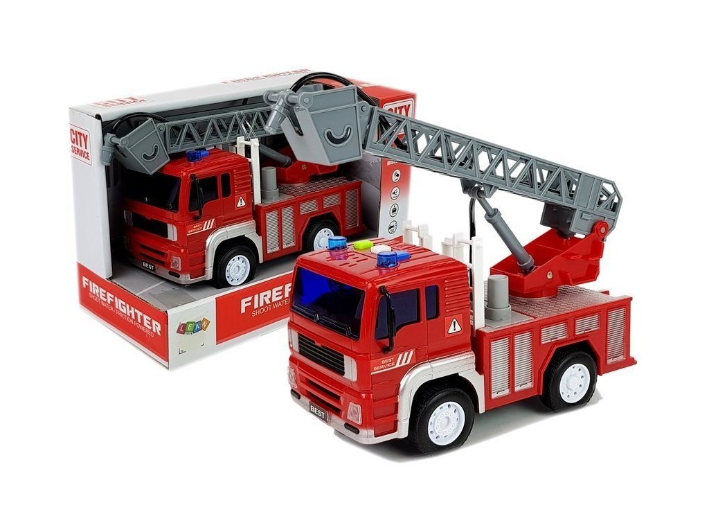 Vehiculul are efecte de sunet și lumină care sunt declanșate de un buton situat pe plafonul vehiculului. Când conduceți la un eveniment, auziți o sirenă cu semnale luminoase. În plus, sunt montate două butoane - claxonul și semnalul de pornire a mașinii. Mașina are un sistem de frecare, doar împingeți-o, trageți-o înapoi, lăsați-o și urmăriți-l cu viteza înainte. O mașină de pompieri mare și roșie stă pe roți de cauciuc. Toate elementele sunt perfect prelucrate și datorită acestui lucru arată ca o contrapiedă complet funcțională. În plus, pe acoperiș este montată o scară cu furtun de incendiu, așa că micul pompier poate ajunge acum la ultimul etaj și stinge focul mare. În timpul jocului, copilul își dezvoltă imaginația și gândirea logică.