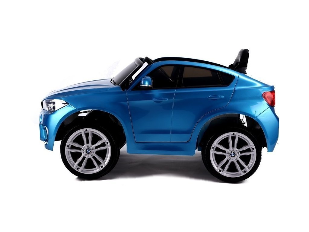 Mașină electrică pentru copii BMW X6 cu telecomandă inovatoare destinată părinților. Jucaria electrica are un scaun confortabil si o centura de siguranta este asezata pe scaun pentru siguranta copilului. Mașina de jucărie este echipată cu un tablou de bord, un volan, lumini frontale strălucitoare și un panou audio. Vehiculul poate fi controlat în două moduri, fie prin utilizarea telecomenzii, care este destinată părinților, unde părintele alege direcția și viteza de deplasare, fie copilul poate conduce mașina de jucărie complet independent. Roțile jucăriei electrice sunt fabricate din spumă moale și permit astfel o călătorie lină și plăcută. BMW X6 pentru fiecare iubitor de mașini mari!
